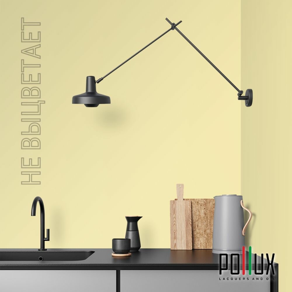 Краска моющаяся интерьерная для стен и потолков, Pollux INTERIOR без запаха, быстросохнущая, акриловая, матовое покрытие, цвет NCS S 0510-G90Y, 1л.