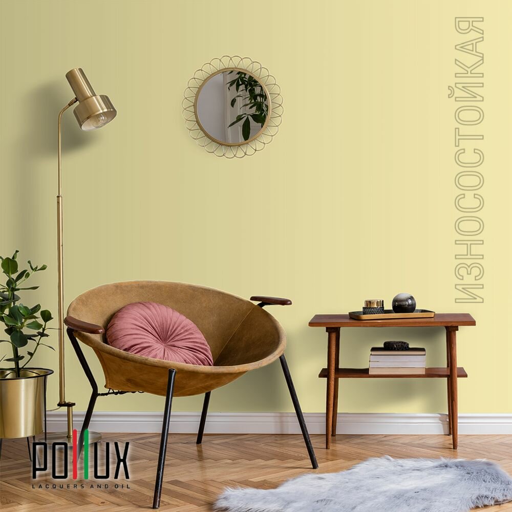 Краска моющаяся интерьерная для стен и потолков, Pollux INTERIOR без запаха, быстросохнущая, акриловая, матовое покрытие, цвет NCS S 1010-G90Y, 1л.