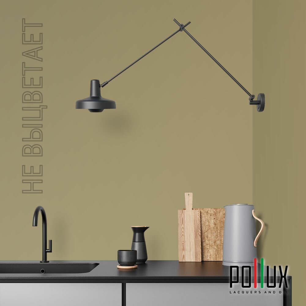 Краска моющаяся интерьерная для стен и потолков, Pollux INTERIOR без запаха, быстросохнущая, акриловая, матовое покрытие, цвет NCS S 8010-G90Y, 1л.