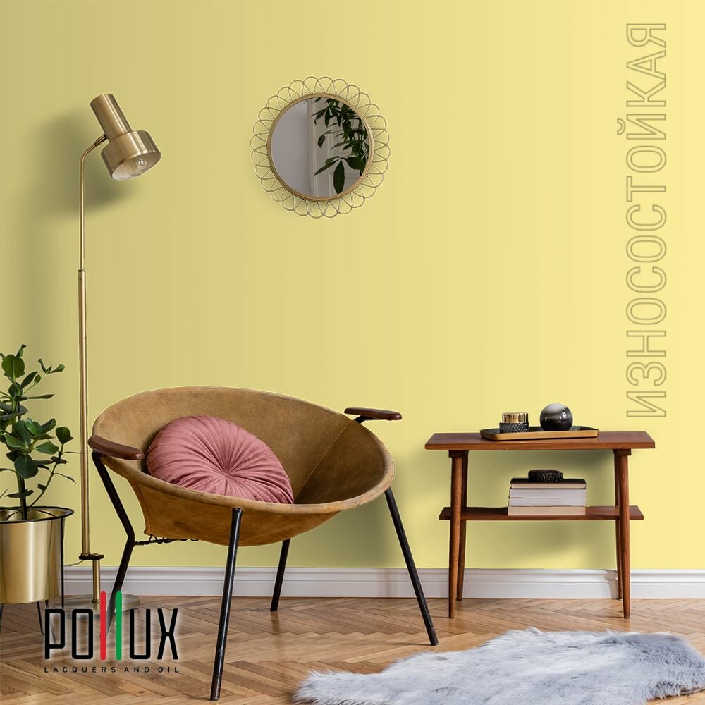 Краска моющаяся интерьерная для стен и потолков, Pollux INTERIOR без запаха, быстросохнущая, акриловая, матовое покрытие, цвет NCS S 0520-G90Y, 1л.