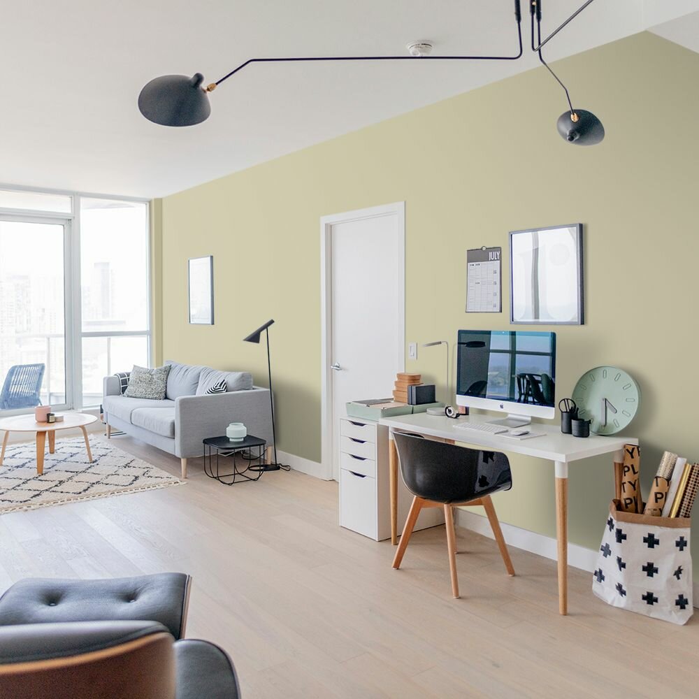 Краска моющаяся интерьерная для стен и потолков, Pollux INTERIOR без запаха, быстросохнущая, акриловая, матовое покрытие, цвет NCS S 0520-G90Y, 1л.