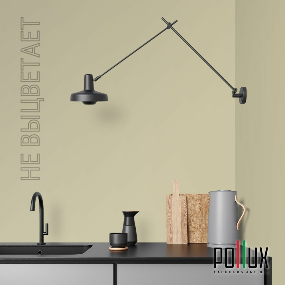Краска моющаяся интерьерная для стен и потолков, Pollux INTERIOR без запаха, быстросохнущая, акриловая, матовое покрытие, цвет NCS S 4010-G90Y, 1л.