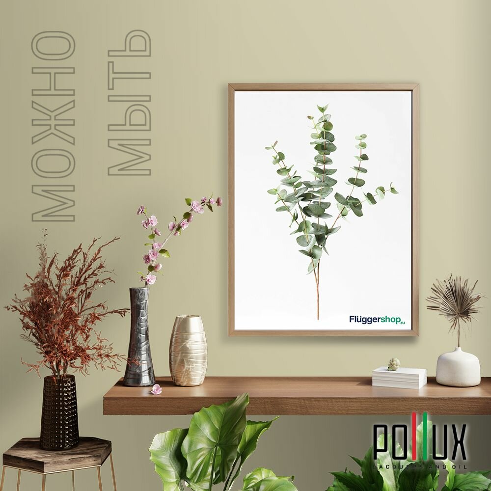 Краска моющаяся интерьерная для стен и потолков, Pollux INTERIOR без запаха, быстросохнущая, акриловая, матовое покрытие, цвет NCS S 4030-G90Y, 1л.