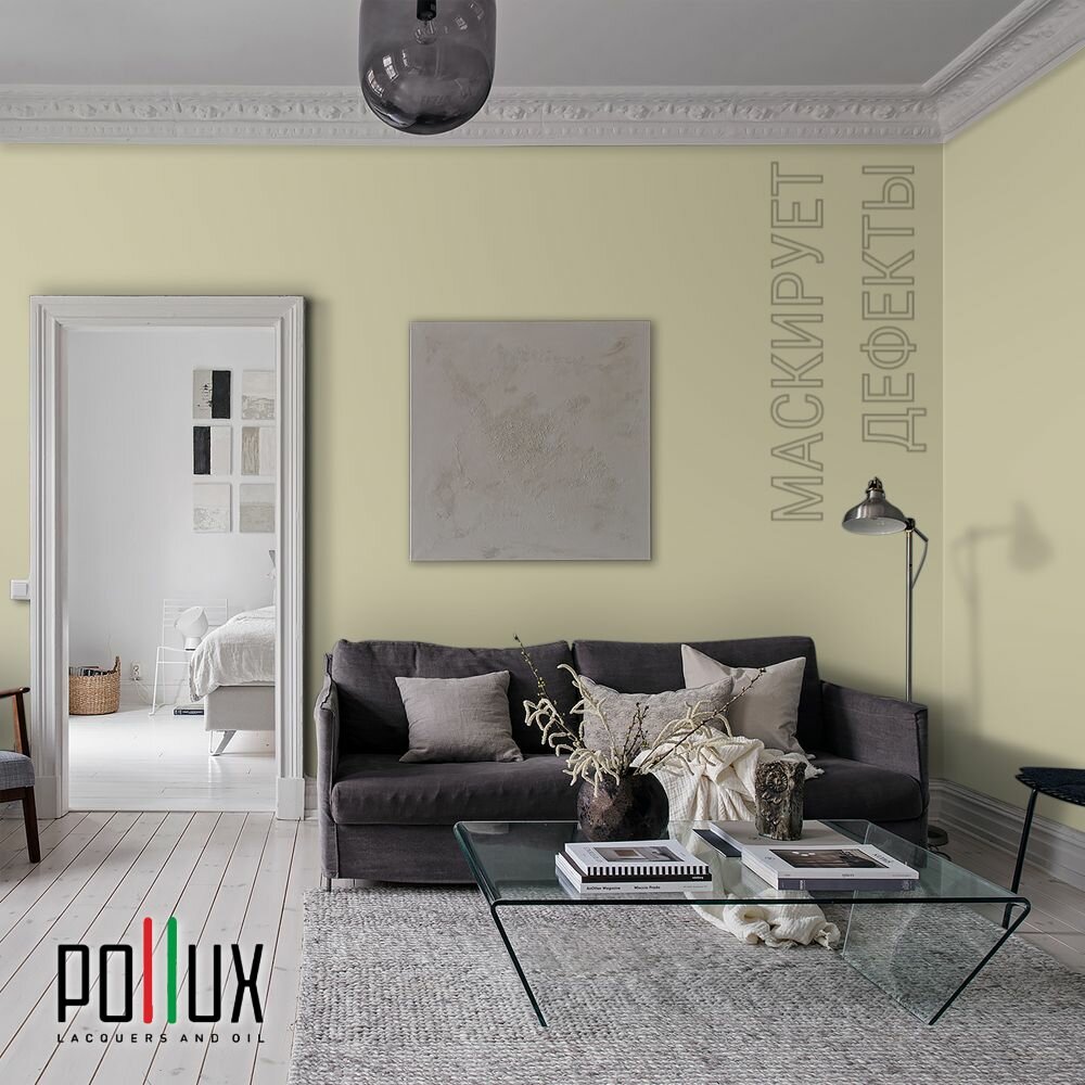 Краска моющаяся интерьерная для стен и потолков, Pollux INTERIOR без запаха, быстросохнущая, акриловая, матовое покрытие, цвет NCS S 0907-G90Y, 1л.