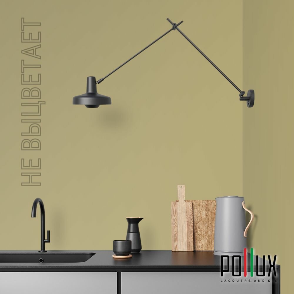 Краска моющаяся интерьерная для стен и потолков, Pollux INTERIOR без запаха, быстросохнущая, акриловая, матовое покрытие, цвет NCS S 6020-G90Y, 1л.