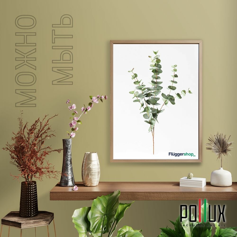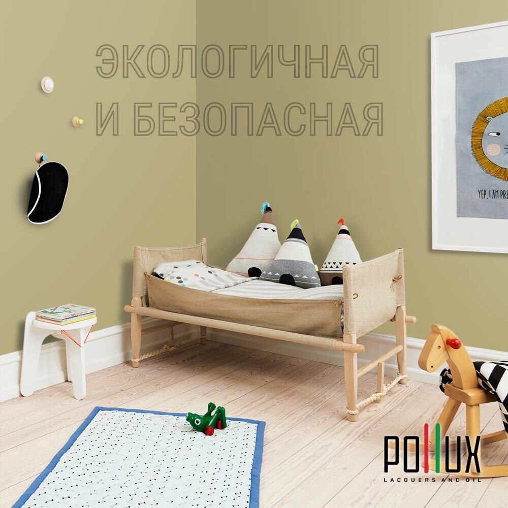 Краска моющаяся интерьерная для стен и потолков, Pollux INTERIOR без запаха, быстросохнущая, акриловая, матовое покрытие, цвет NCS S 8010-G90Y, 1л.