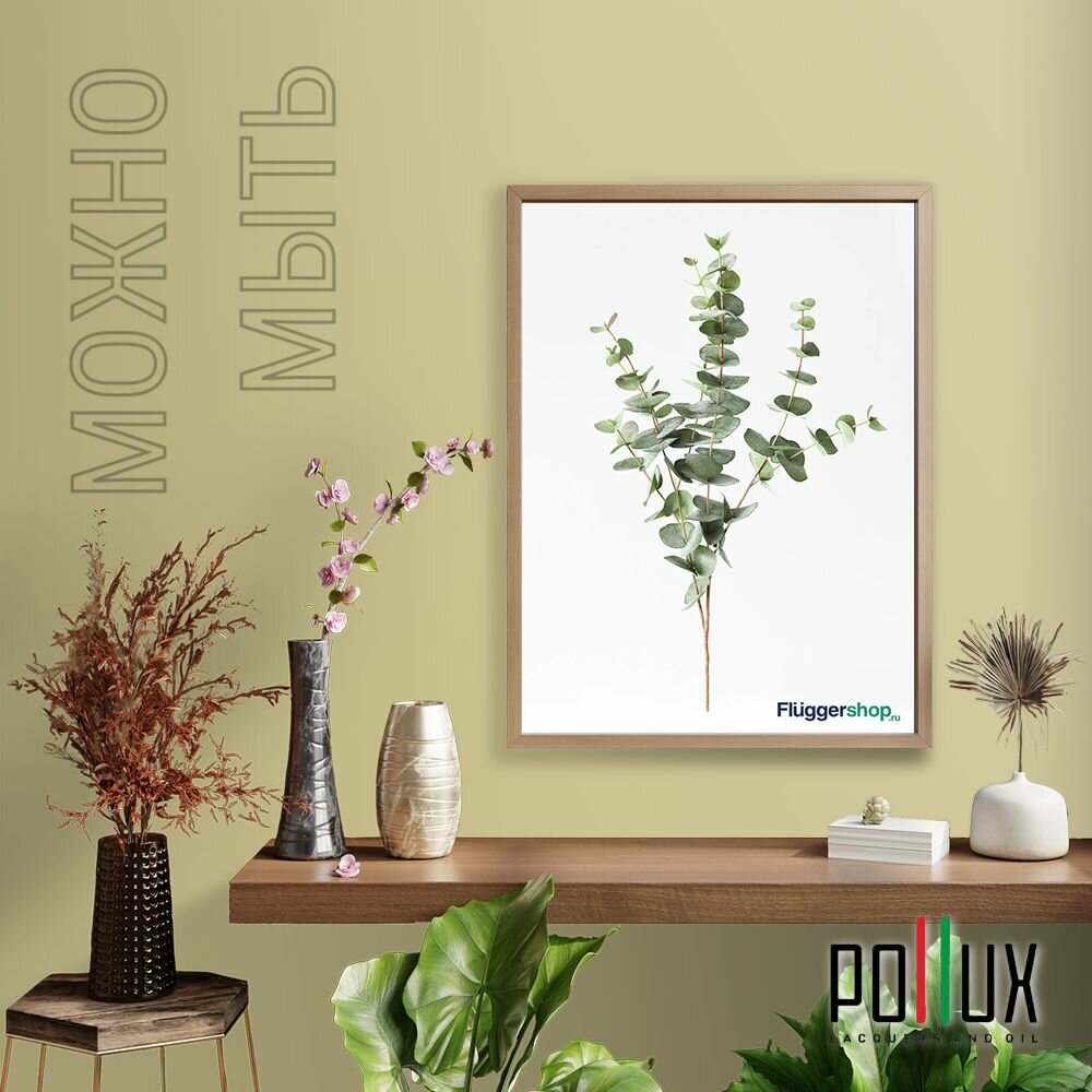 Краска моющаяся интерьерная для стен и потолков, Pollux INTERIOR без запаха, быстросохнущая, акриловая, матовое покрытие, цвет NCS S 8010-G90Y, 1л.