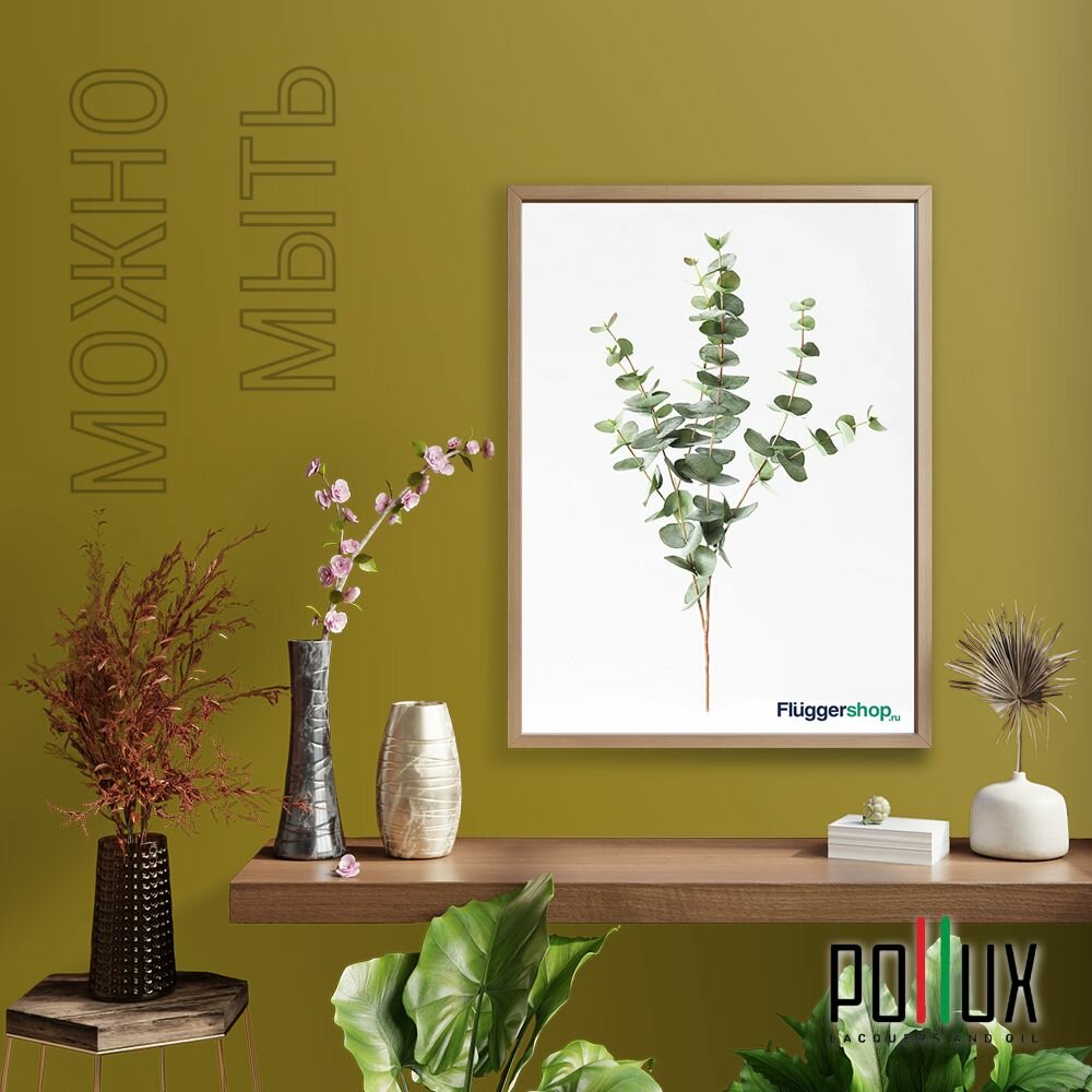 Краска моющаяся интерьерная для стен и потолков, Pollux INTERIOR без запаха, быстросохнущая, акриловая, матовое покрытие, цвет NCS S 8010-G90Y, 1л.