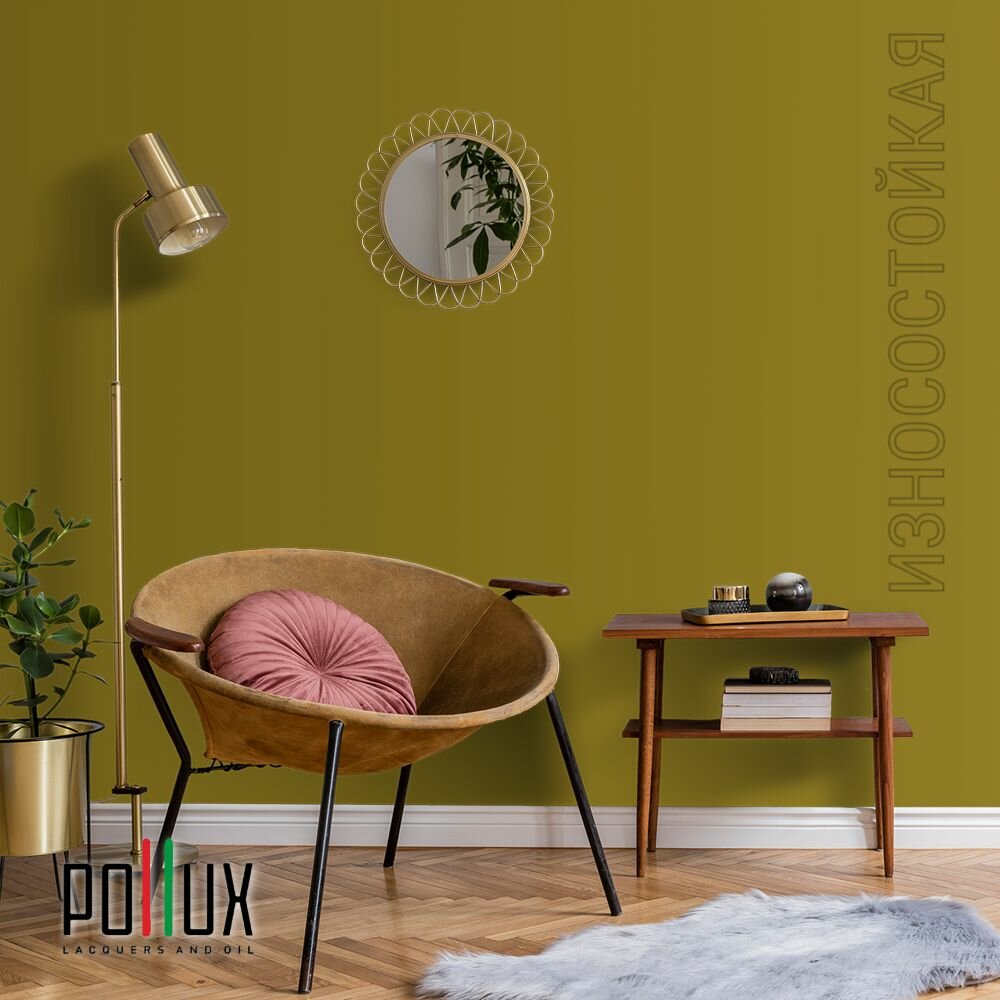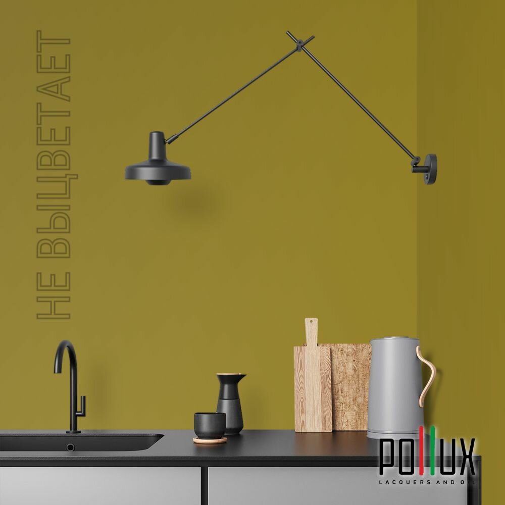Краска моющаяся интерьерная для стен и потолков, Pollux INTERIOR без запаха, быстросохнущая, акриловая, матовое покрытие, цвет NCS S 1060-G90Y, 1л.
