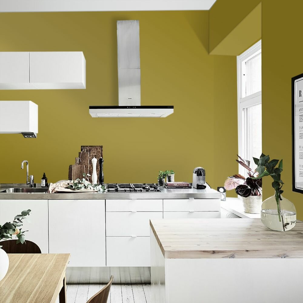 Краска моющаяся интерьерная для стен и потолков, Pollux INTERIOR без запаха, быстросохнущая, акриловая, матовое покрытие, цвет NCS S 1005-G90Y, 1л.
