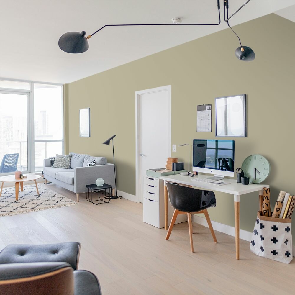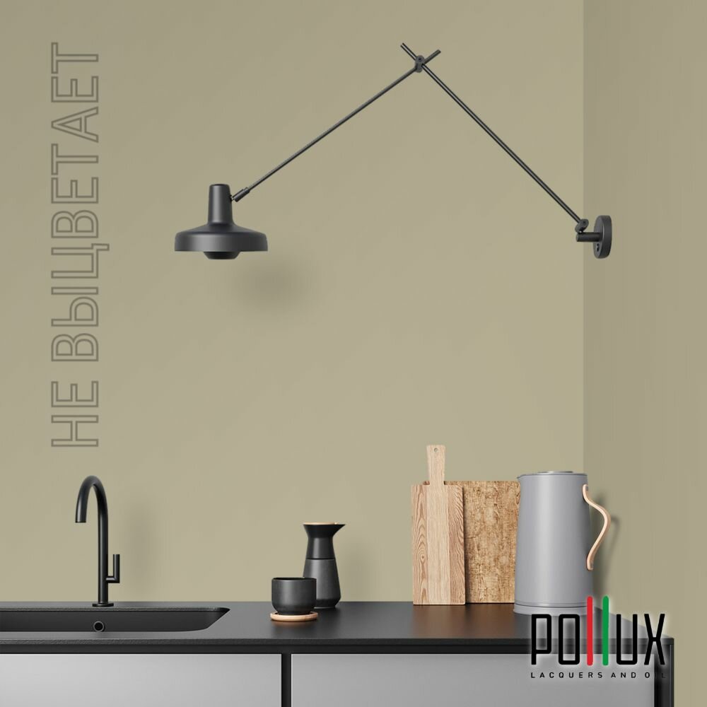 Краска моющаяся интерьерная для стен и потолков, Pollux INTERIOR без запаха, быстросохнущая, акриловая, матовое покрытие, цвет NCS S 8010-G90Y, 1л.