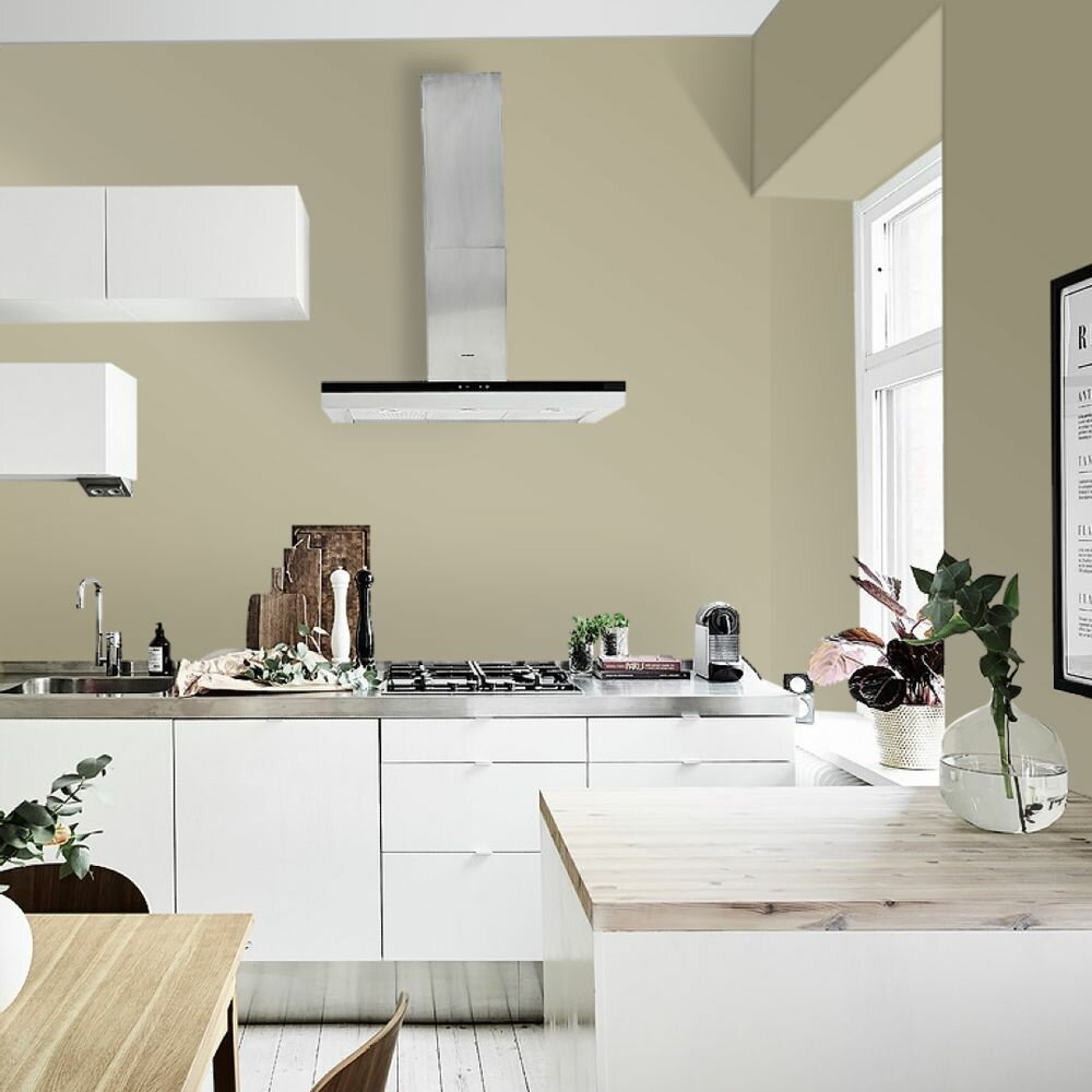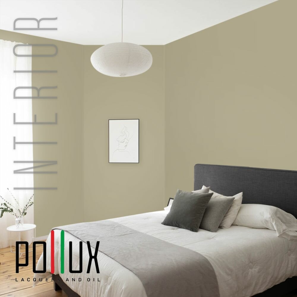 Краска моющаяся интерьерная для стен и потолков, Pollux INTERIOR без запаха, быстросохнущая, акриловая, матовое покрытие, цвет NCS S 1015-G90Y, 1л.