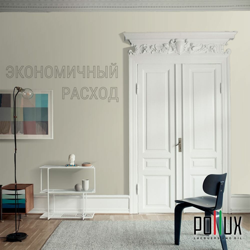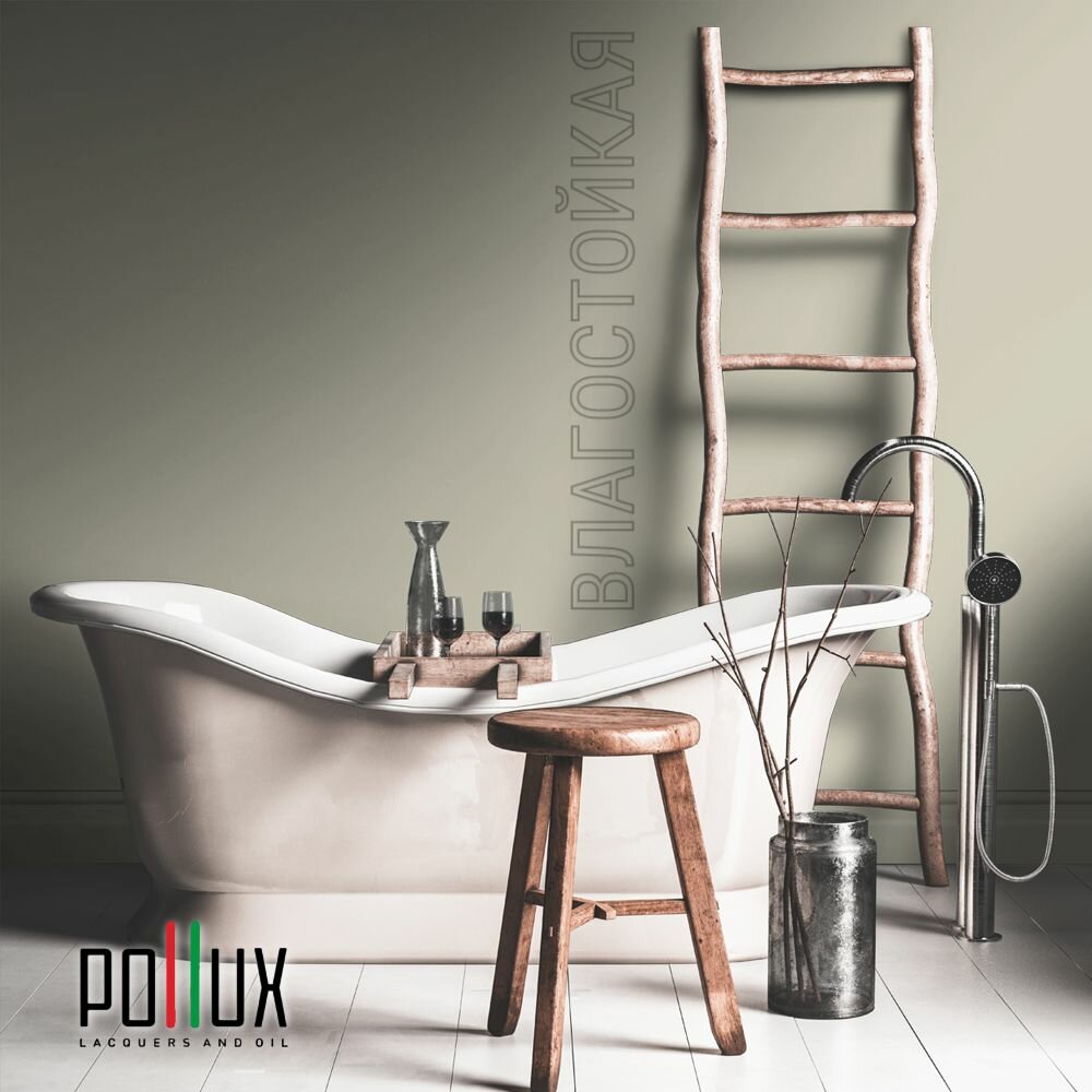 Краска моющаяся интерьерная для стен и потолков, Pollux INTERIOR без запаха, быстросохнущая, акриловая, матовое покрытие, цвет NCS S 7010-G90Y, 1л.