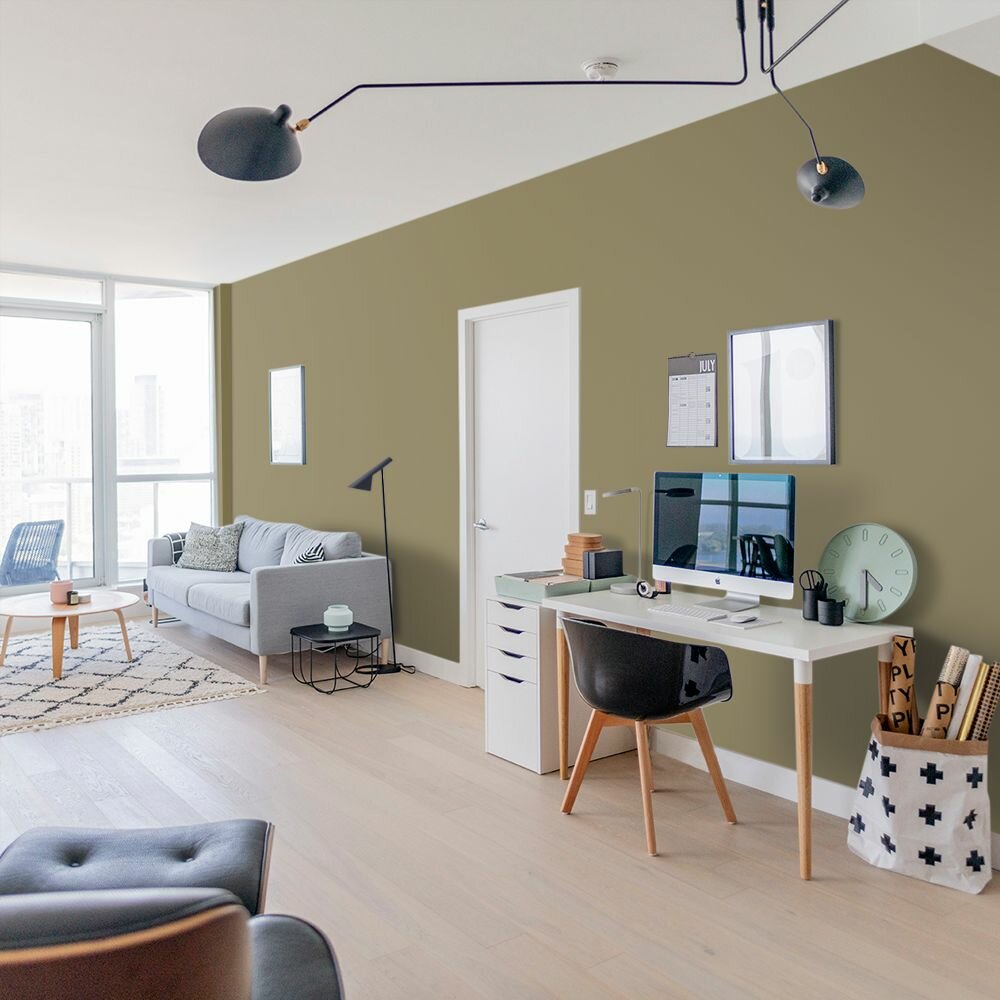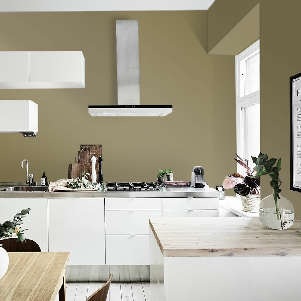 Краска моющаяся интерьерная для стен и потолков, Pollux INTERIOR без запаха, быстросохнущая, акриловая, матовое покрытие, цвет NCS S 8010-G90Y, 1л.