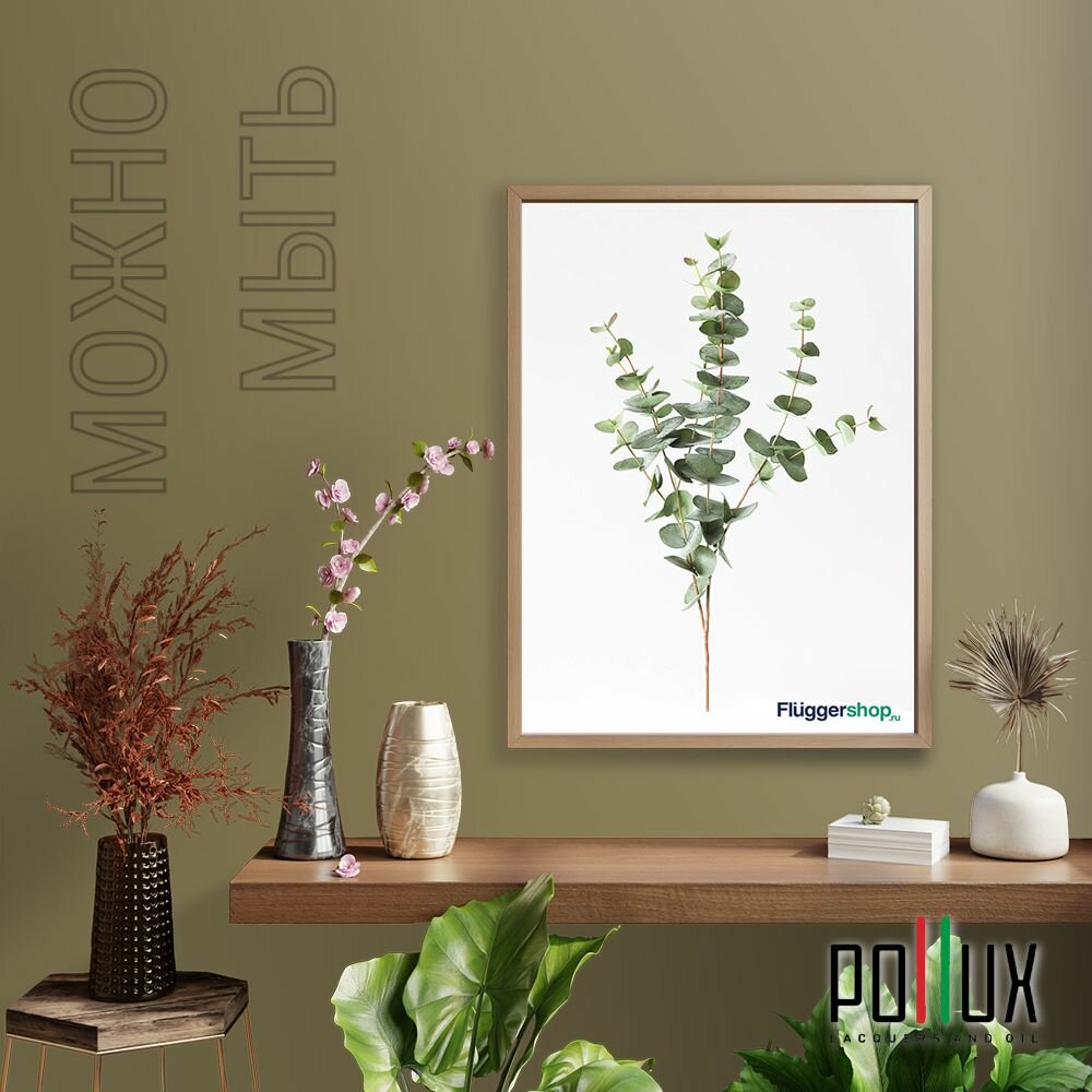 Краска моющаяся интерьерная для стен и потолков, Pollux INTERIOR без запаха, быстросохнущая, акриловая, матовое покрытие, цвет NCS S 6005-R20B, 1л.