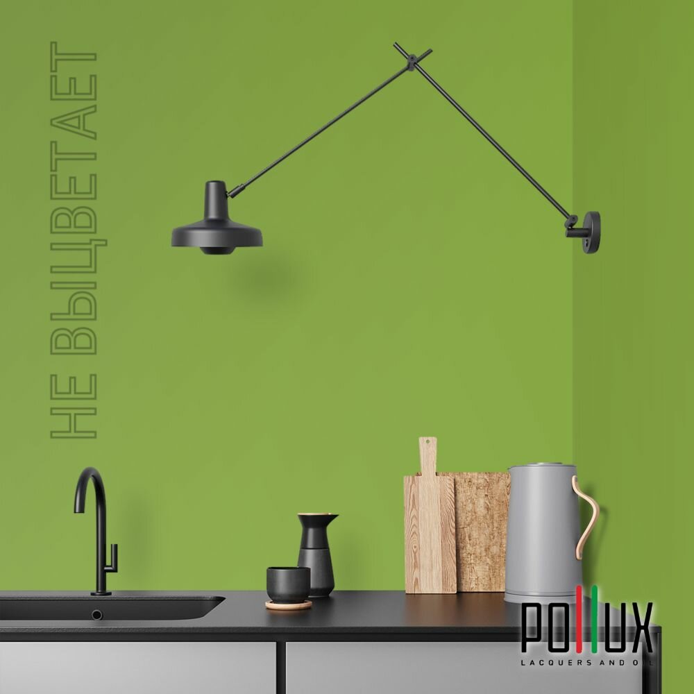 Краска моющаяся интерьерная для стен и потолков, Pollux INTERIOR без запаха, быстросохнущая, акриловая, матовое покрытие, цвет NCS S 1510-G40Y, 1л.