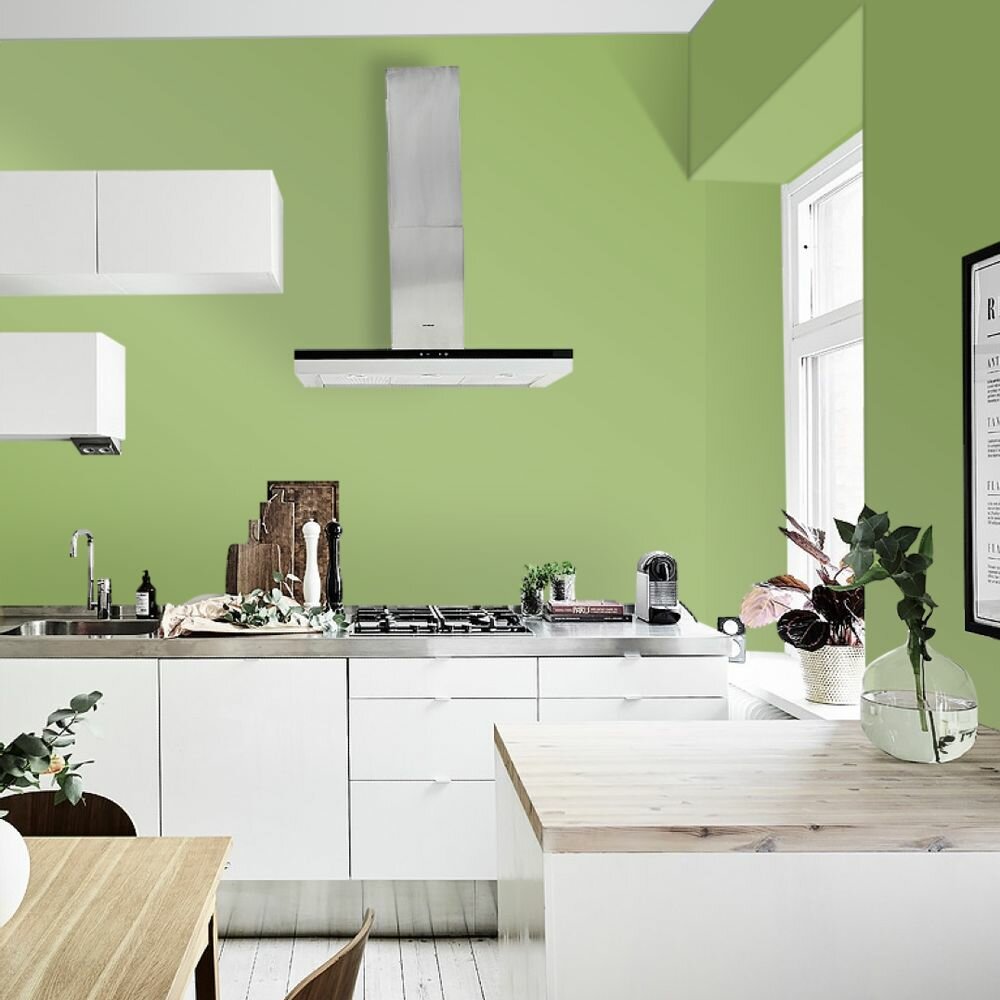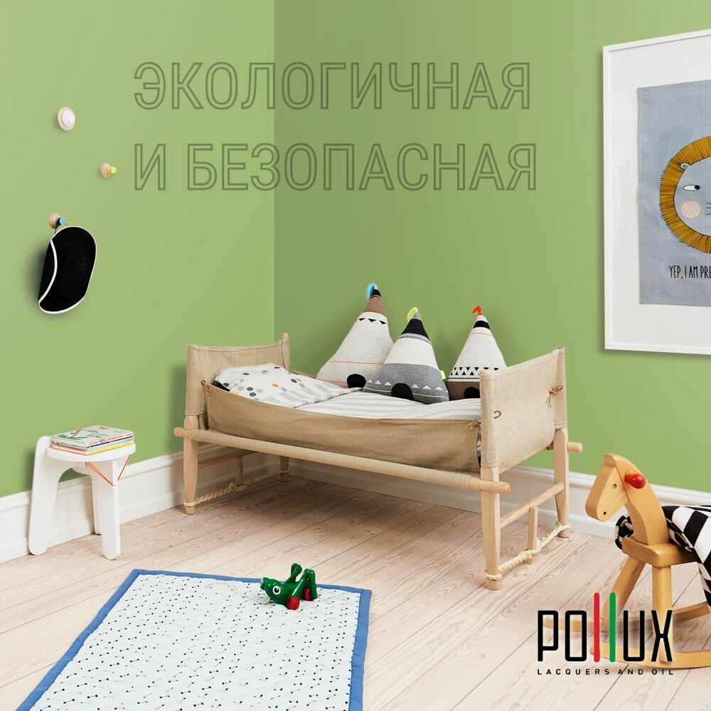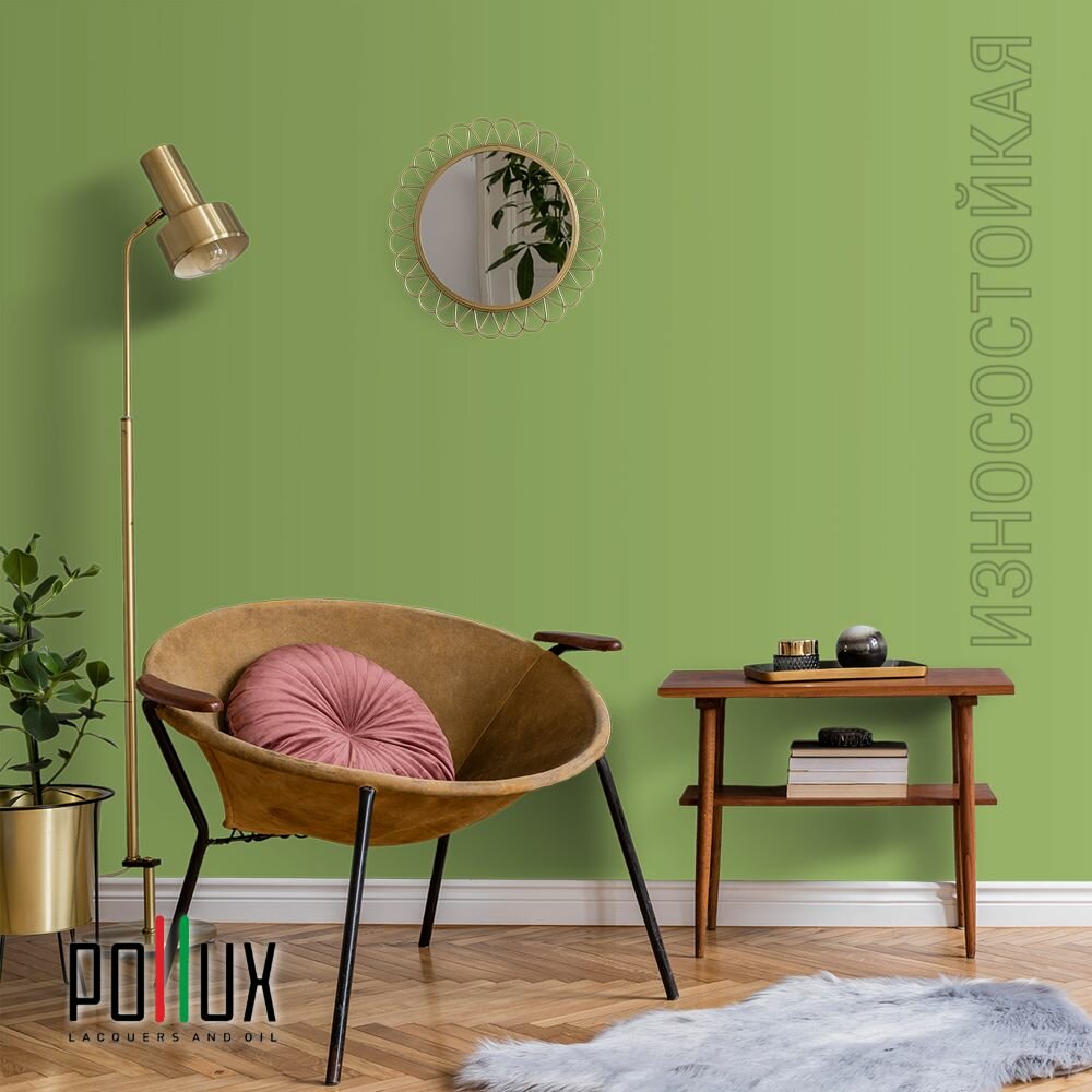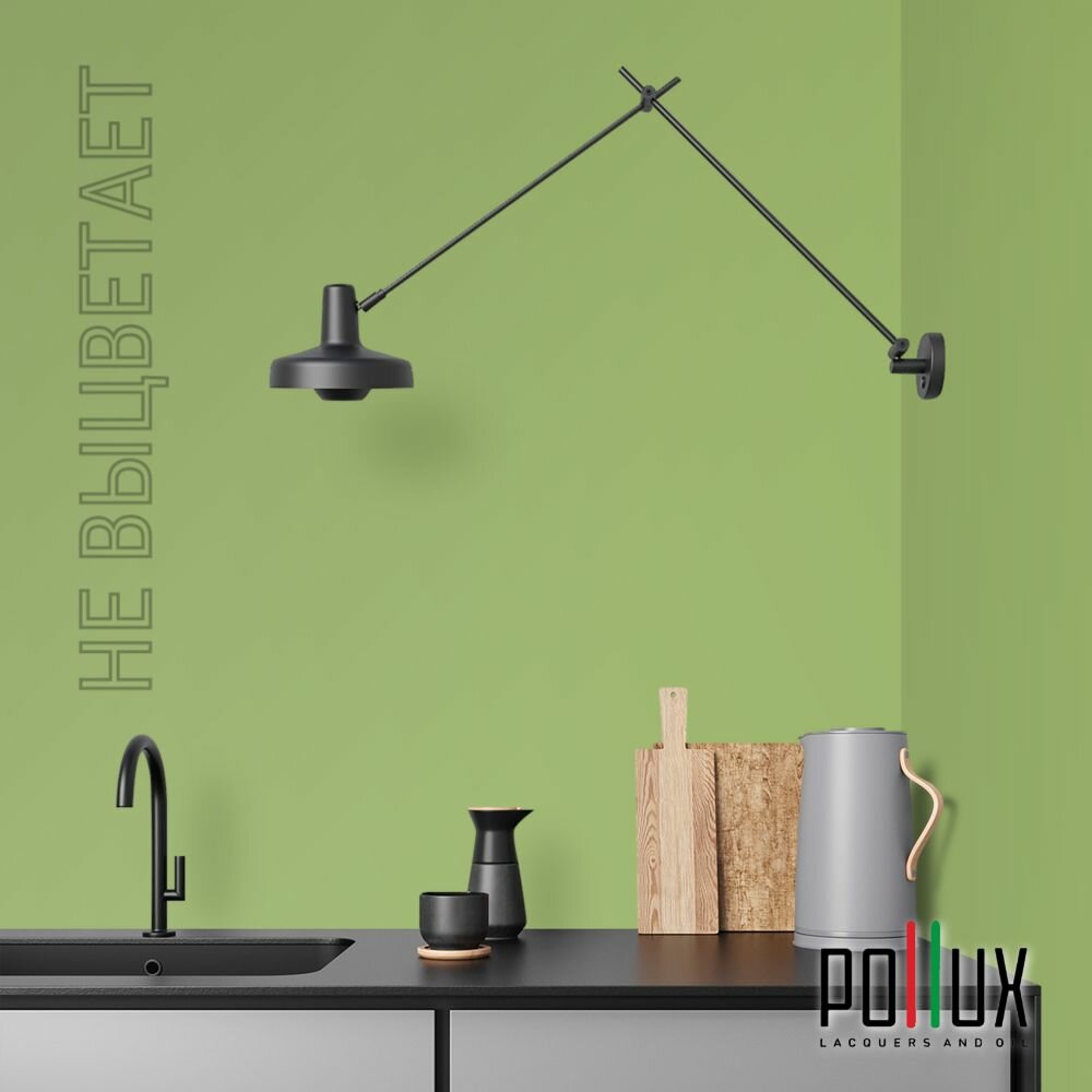 Краска моющаяся интерьерная для стен и потолков, Pollux INTERIOR без запаха, быстросохнущая, акриловая, матовое покрытие, цвет NCS S 3060-G40Y, 1л.