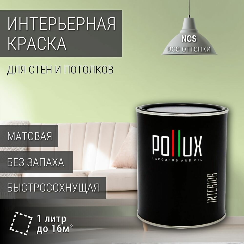 Краска моющаяся интерьерная для стен и потолков, Pollux INTERIOR без запаха, быстросохнущая, акриловая, матовое покрытие, цвет NCS S 0560-G40Y, 1л.