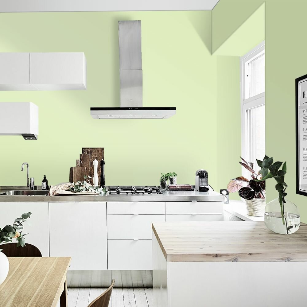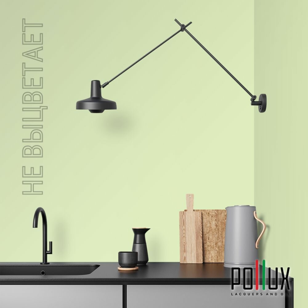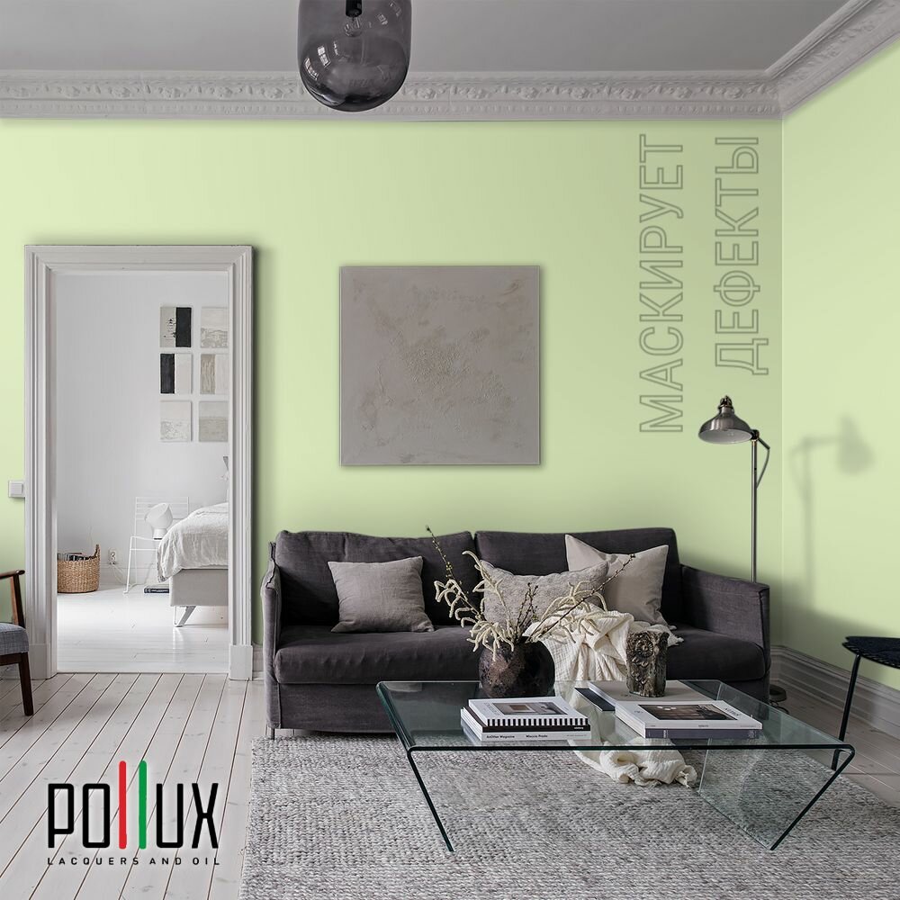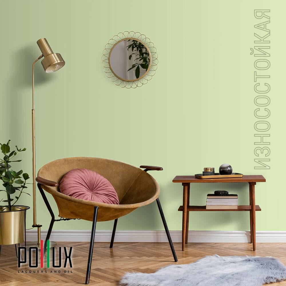 Краска моющаяся интерьерная для стен и потолков, Pollux INTERIOR без запаха, быстросохнущая, акриловая, матовое покрытие, цвет NCS S 0530-G40Y, 1л.