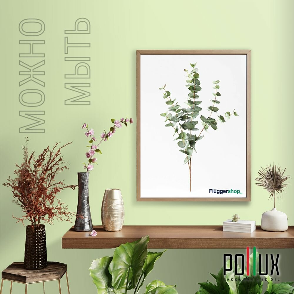 Краска моющаяся интерьерная для стен и потолков, Pollux INTERIOR без запаха, быстросохнущая, акриловая, матовое покрытие, цвет NCS S 3060-G40Y, 1л.