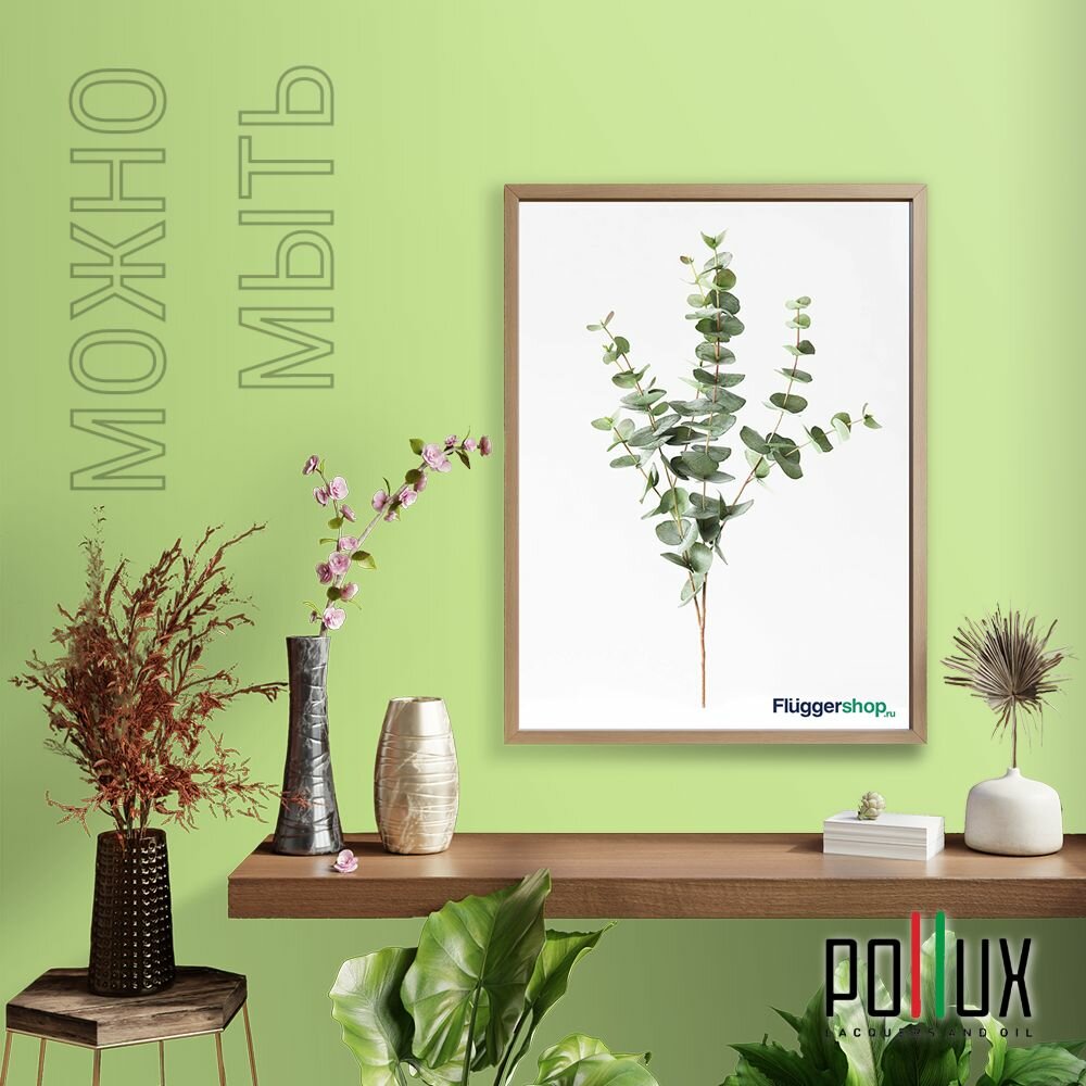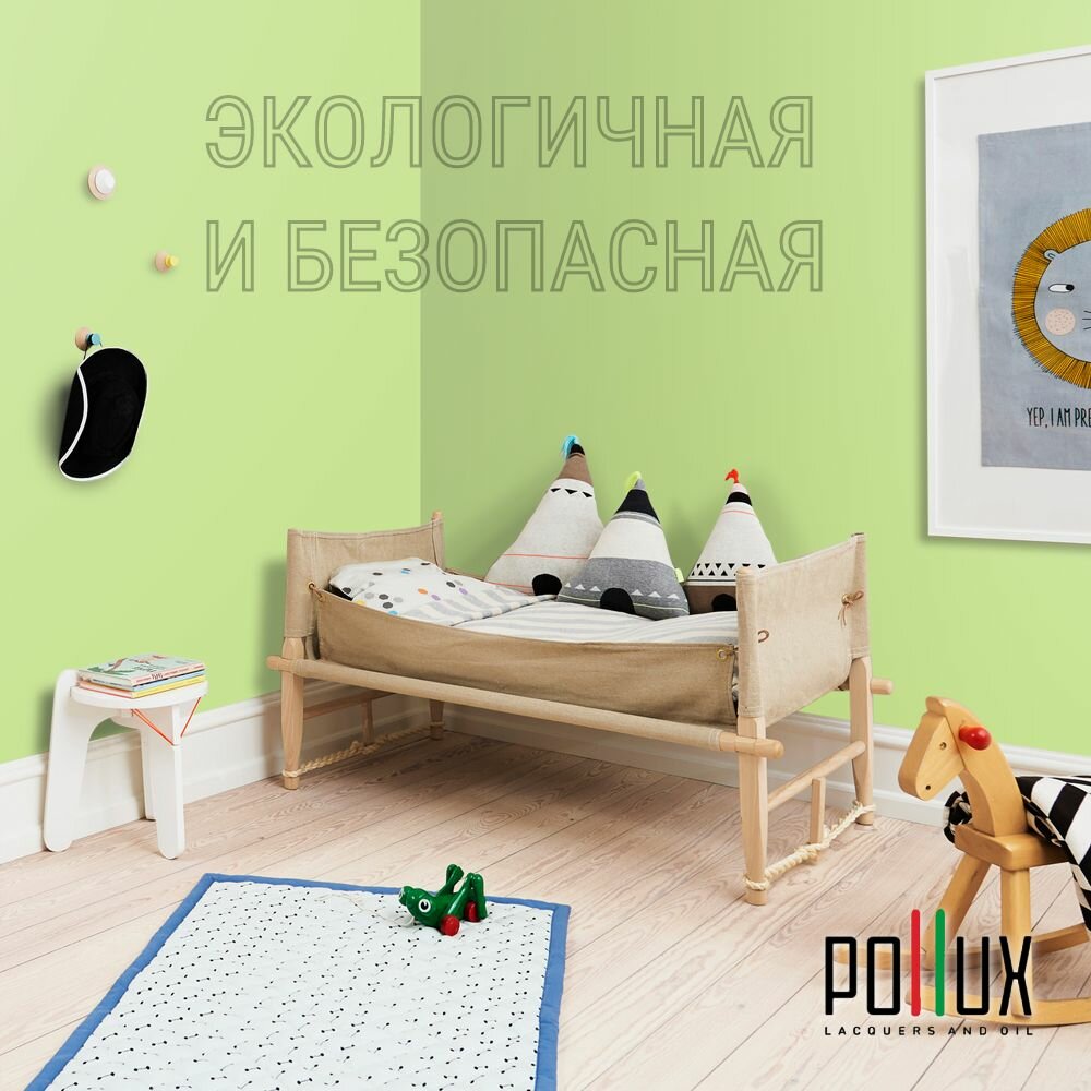 Краска моющаяся интерьерная для стен и потолков, Pollux INTERIOR без запаха, быстросохнущая, акриловая, матовое покрытие, цвет NCS S 5540-G40Y, 1л.
