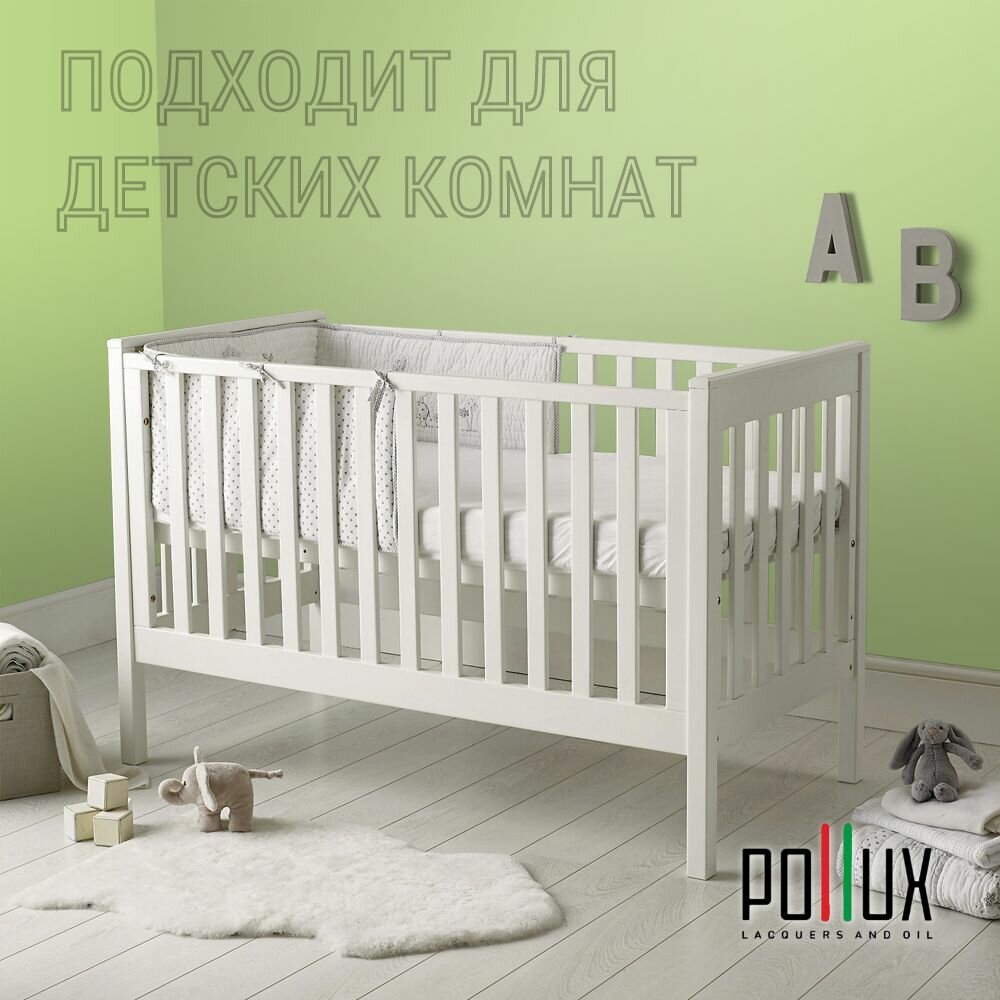 Краска моющаяся интерьерная для стен и потолков, Pollux INTERIOR без запаха, быстросохнущая, акриловая, матовое покрытие, цвет NCS S 0603-G40Y, 1л.