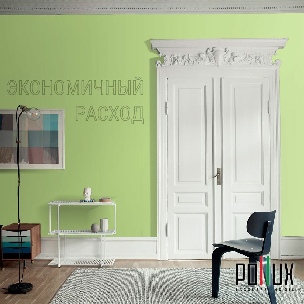 Краска моющаяся интерьерная для стен и потолков, Pollux INTERIOR без запаха, быстросохнущая, акриловая, матовое покрытие, цвет NCS S 1060-G40Y, 1л.