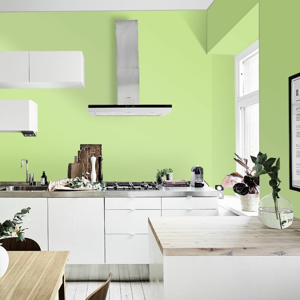 Краска моющаяся интерьерная для стен и потолков, Pollux INTERIOR без запаха, быстросохнущая, акриловая, матовое покрытие, цвет NCS S 0530-G40Y, 1л.