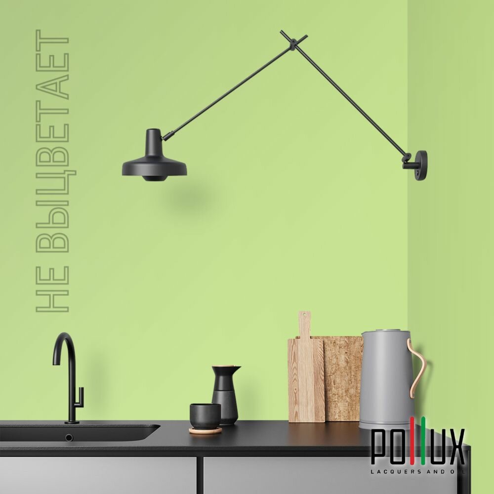 Краска моющаяся интерьерная для стен и потолков, Pollux INTERIOR без запаха, быстросохнущая, акриловая, матовое покрытие, цвет NCS S 0510-G40Y, 1л.
