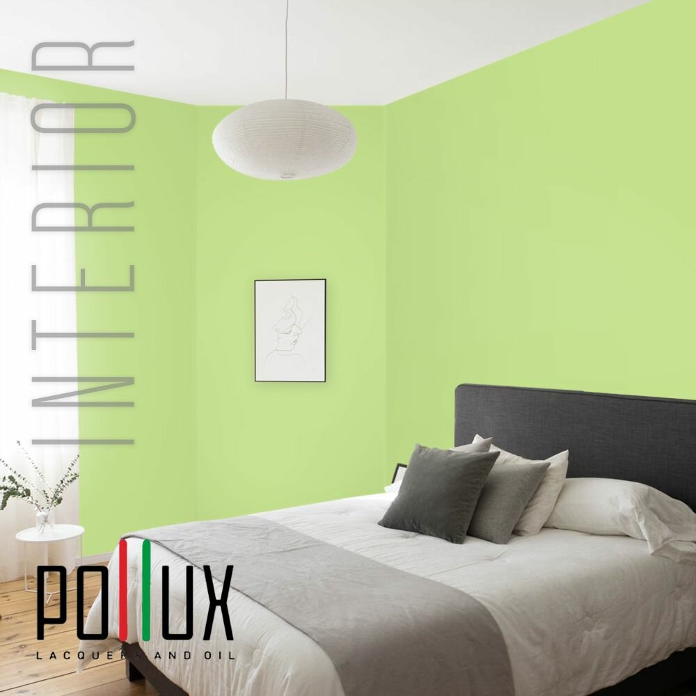 Краска моющаяся интерьерная для стен и потолков, Pollux INTERIOR без запаха, быстросохнущая, акриловая, матовое покрытие, цвет NCS S 0575-G40Y, 1л.