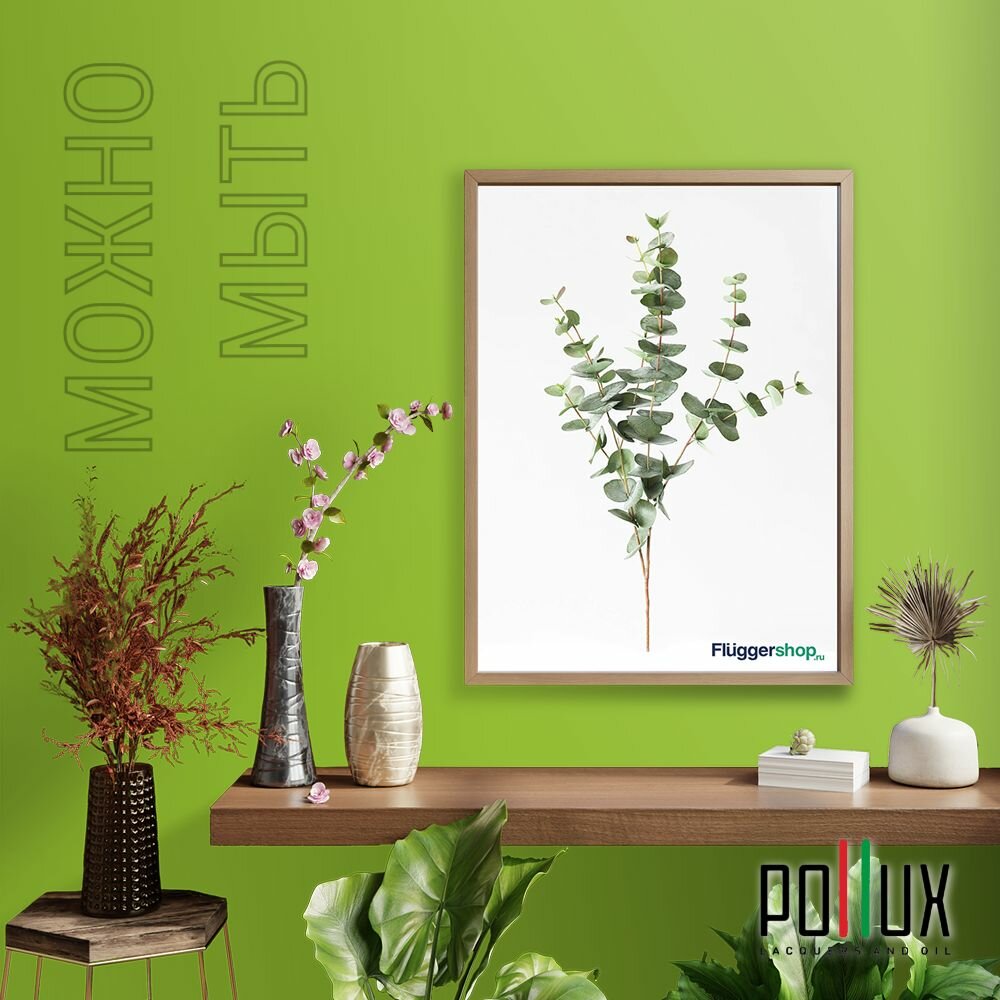 Краска моющаяся интерьерная для стен и потолков, Pollux INTERIOR без запаха, быстросохнущая, акриловая, матовое покрытие, цвет NCS S 3060-G40Y, 1л.