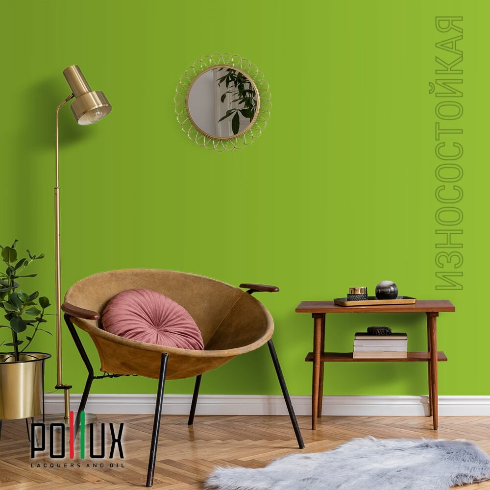Краска моющаяся интерьерная для стен и потолков, Pollux INTERIOR без запаха, быстросохнущая, акриловая, матовое покрытие, цвет NCS S 0560-G40Y, 1л.