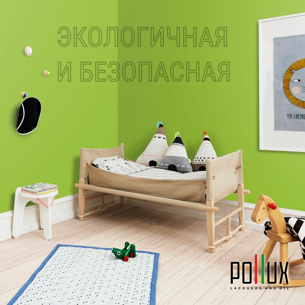 Краска моющаяся интерьерная для стен и потолков, Pollux INTERIOR без запаха, быстросохнущая, акриловая, матовое покрытие, цвет NCS S 1510-G40Y, 1л.