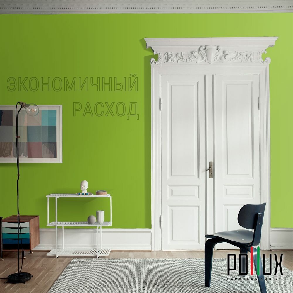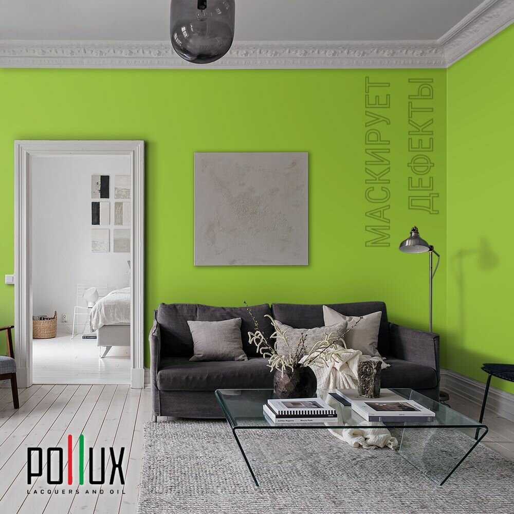 Краска моющаяся интерьерная для стен и потолков, Pollux INTERIOR без запаха, быстросохнущая, акриловая, матовое покрытие, цвет NCS S 1040-G40Y, 1л.