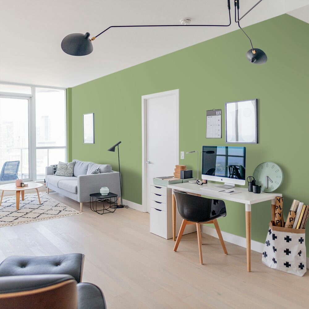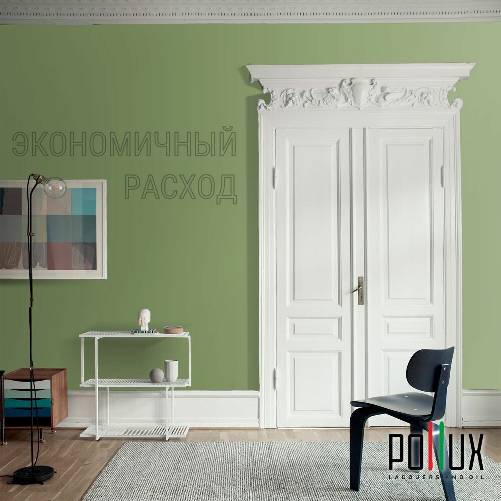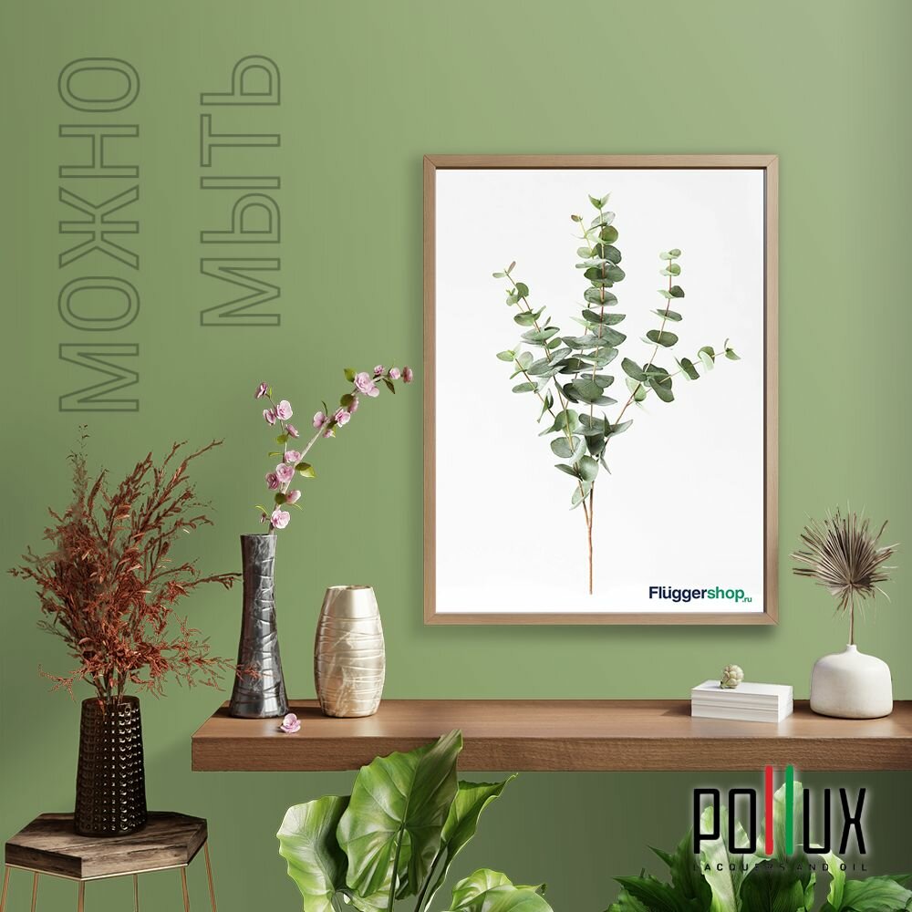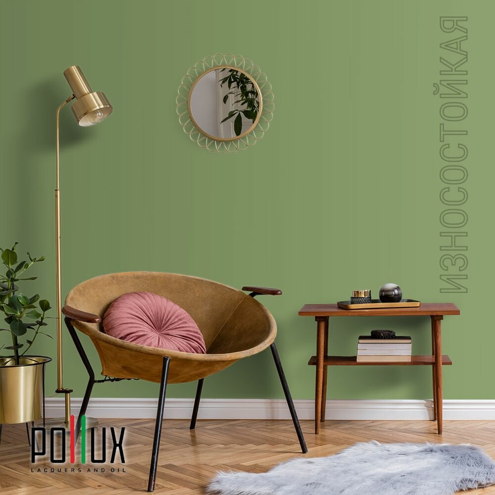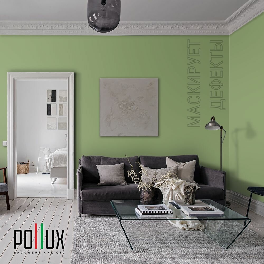 Краска моющаяся интерьерная для стен и потолков, Pollux INTERIOR без запаха, быстросохнущая, акриловая, матовое покрытие, цвет NCS S 3060-G40Y, 1л.