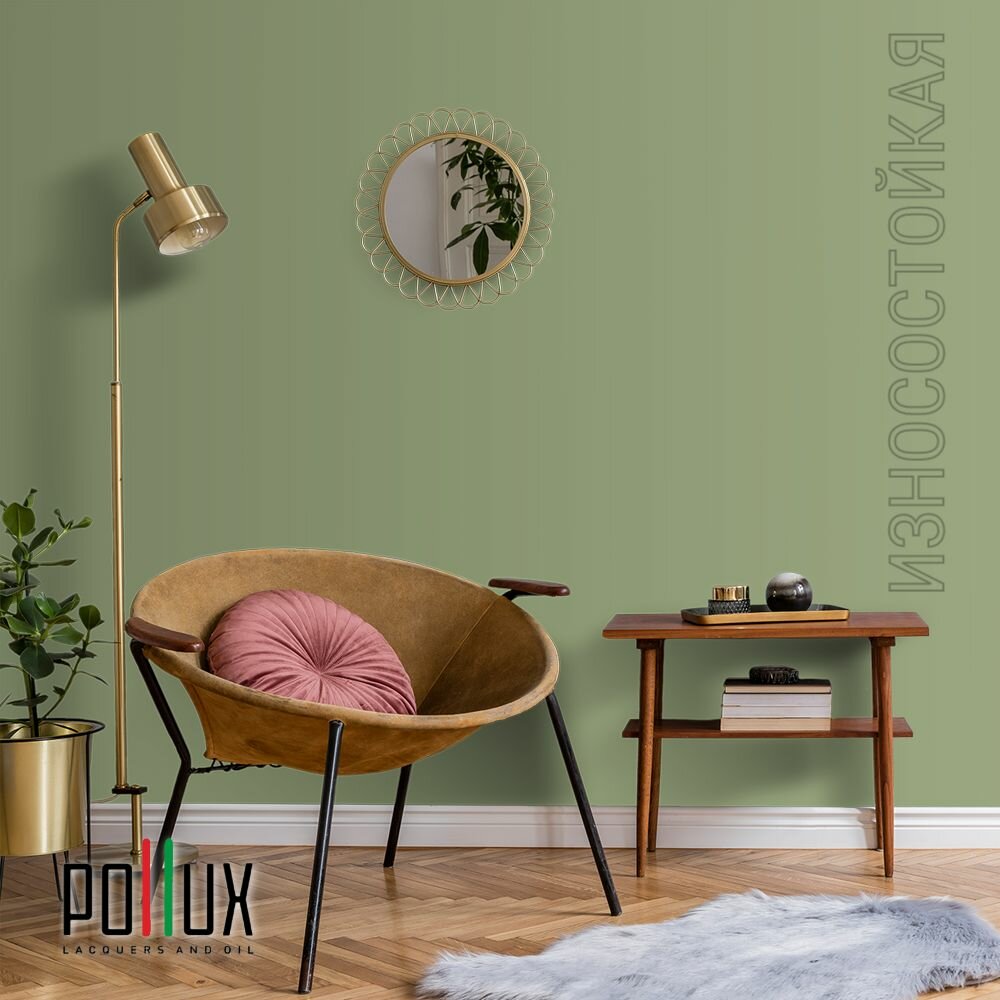 Краска моющаяся интерьерная для стен и потолков, Pollux INTERIOR без запаха, быстросохнущая, акриловая, матовое покрытие, цвет NCS S 4050-G40Y, 1л.