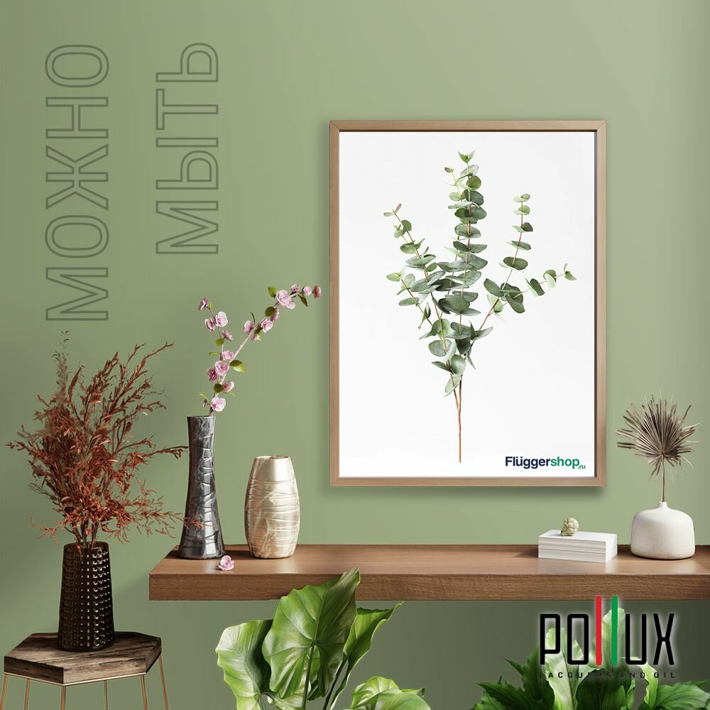 Краска моющаяся интерьерная для стен и потолков, Pollux INTERIOR без запаха, быстросохнущая, акриловая, матовое покрытие, цвет NCS S 5540-G40Y, 1л.
