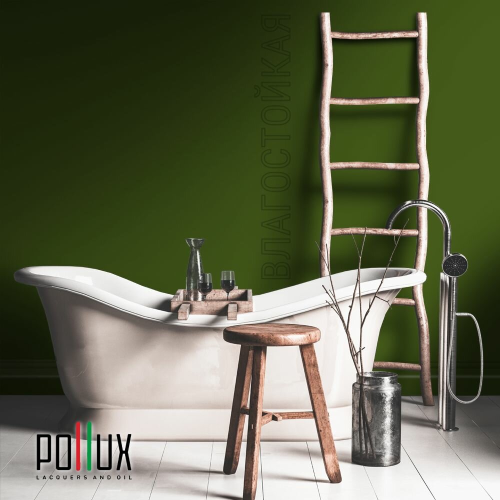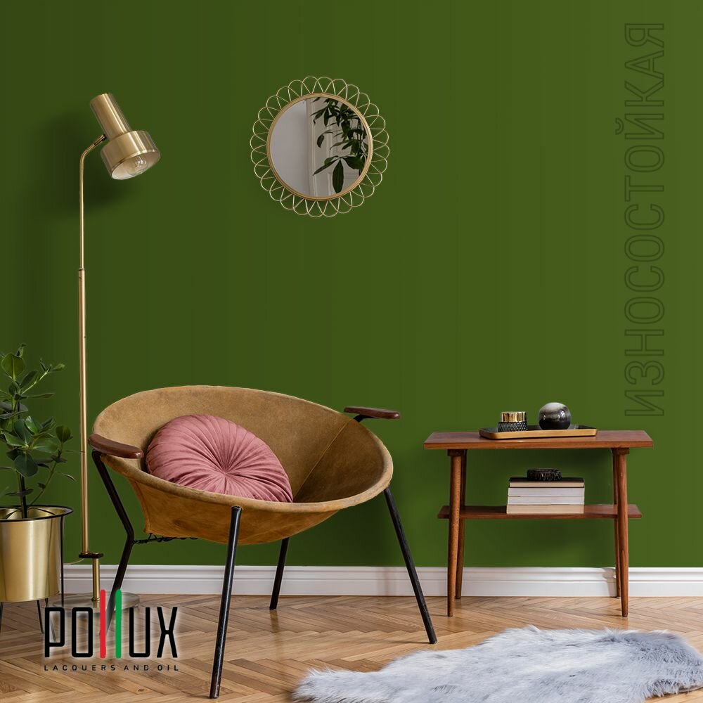 Краска моющаяся интерьерная для стен и потолков, Pollux INTERIOR без запаха, быстросохнущая, акриловая, матовое покрытие, цвет NCS S 4050-G40Y, 1л.