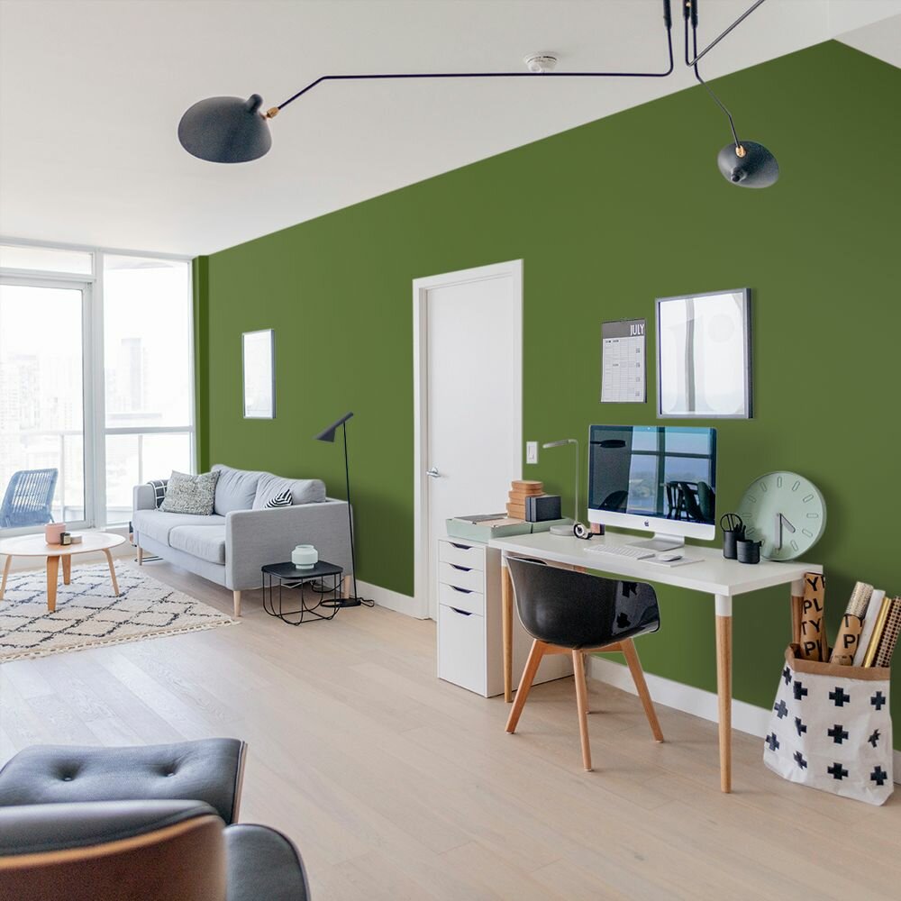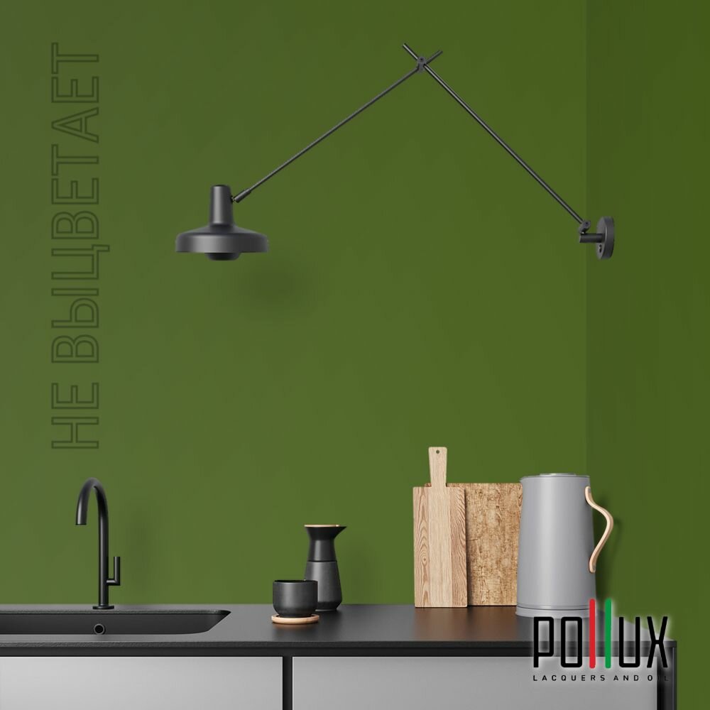 Краска моющаяся интерьерная для стен и потолков, Pollux INTERIOR без запаха, быстросохнущая, акриловая, матовое покрытие, цвет NCS S 3060-G40Y, 1л.