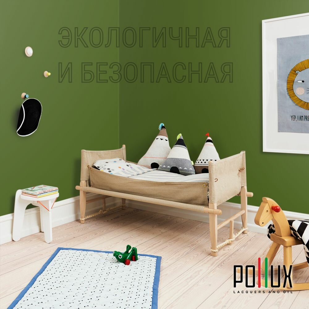 Краска моющаяся интерьерная для стен и потолков, Pollux INTERIOR без запаха, быстросохнущая, акриловая, матовое покрытие, цвет NCS S 4040-G40Y, 1л.