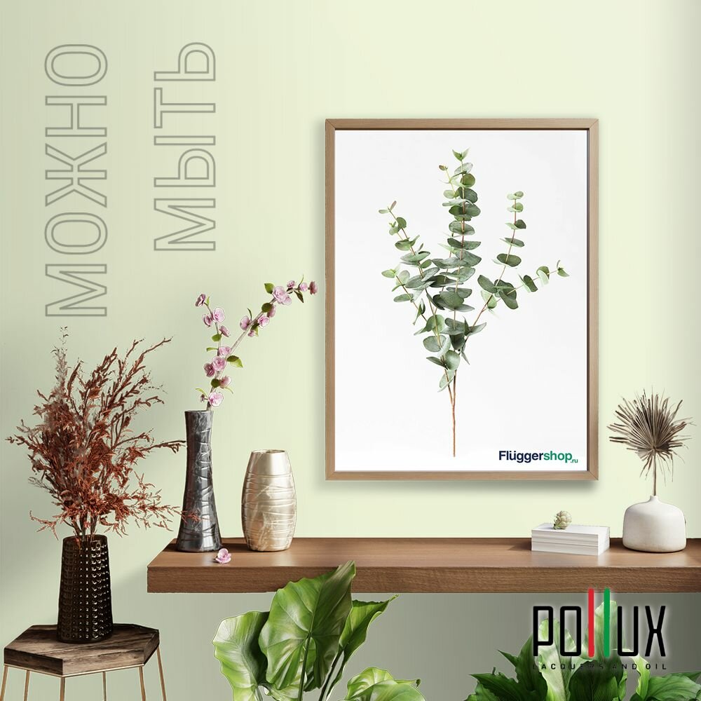 Краска моющаяся интерьерная для стен и потолков, Pollux INTERIOR без запаха, быстросохнущая, акриловая, матовое покрытие, цвет NCS S 5540-G40Y, 1л.