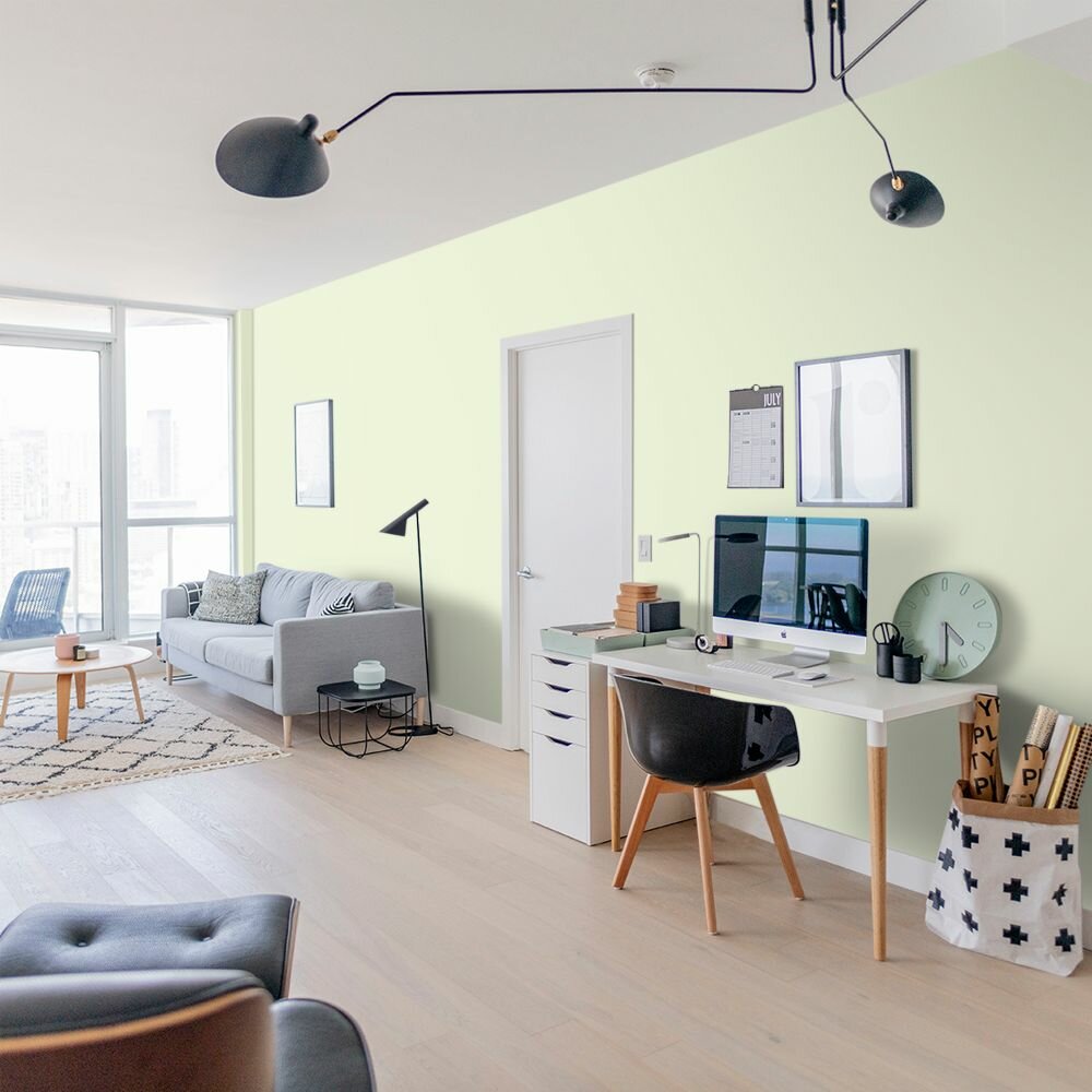 Краска моющаяся интерьерная для стен и потолков, Pollux INTERIOR без запаха, быстросохнущая, акриловая, матовое покрытие, цвет NCS S 0510-G40Y, 1л.