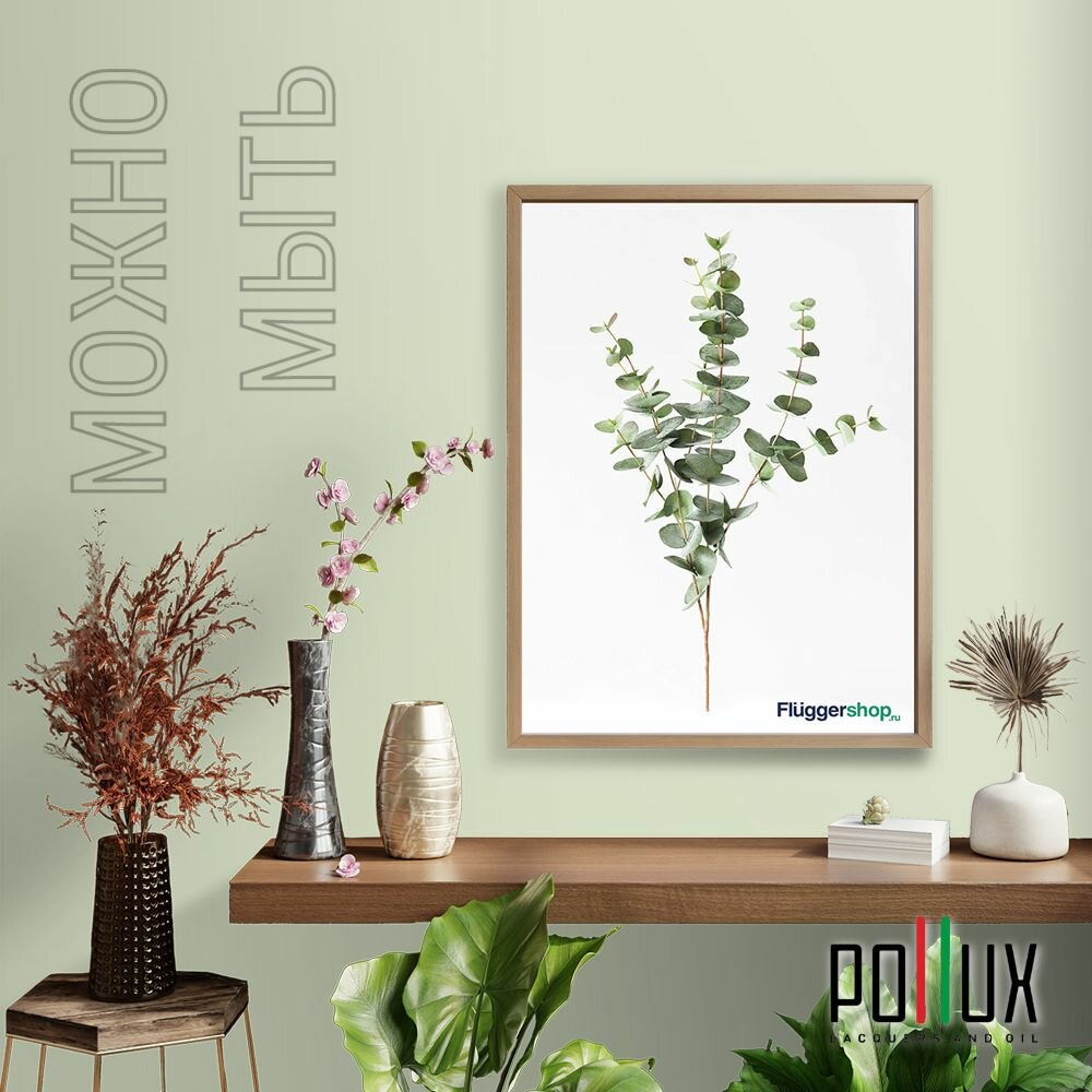 Краска моющаяся интерьерная для стен и потолков, Pollux INTERIOR без запаха, быстросохнущая, акриловая, матовое покрытие, цвет NCS S 5540-G40Y, 1л.
