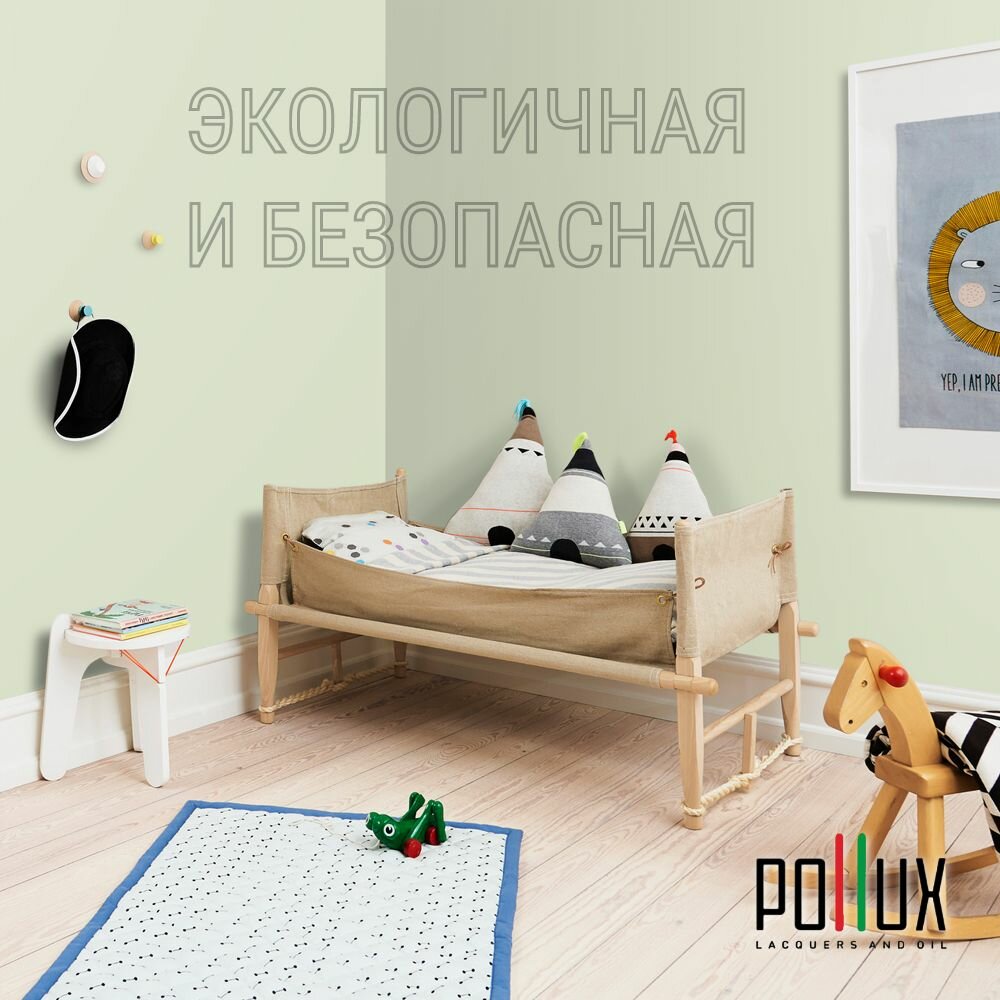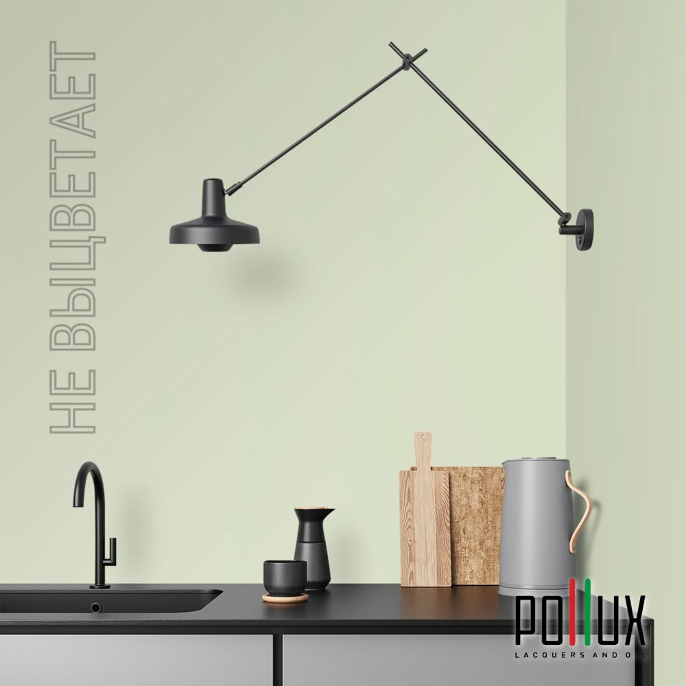 Краска моющаяся интерьерная для стен и потолков, Pollux INTERIOR без запаха, быстросохнущая, акриловая, матовое покрытие, цвет NCS S 1510-G40Y, 1л.