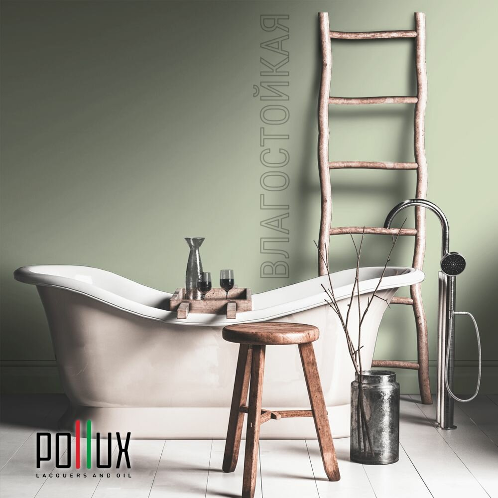 Краска моющаяся интерьерная для стен и потолков, Pollux INTERIOR без запаха, быстросохнущая, акриловая, матовое покрытие, цвет NCS S 1070-G40Y, 1л.