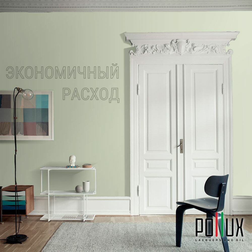 Краска моющаяся интерьерная для стен и потолков, Pollux INTERIOR без запаха, быстросохнущая, акриловая, матовое покрытие, цвет NCS S 1040-G40Y, 1л.