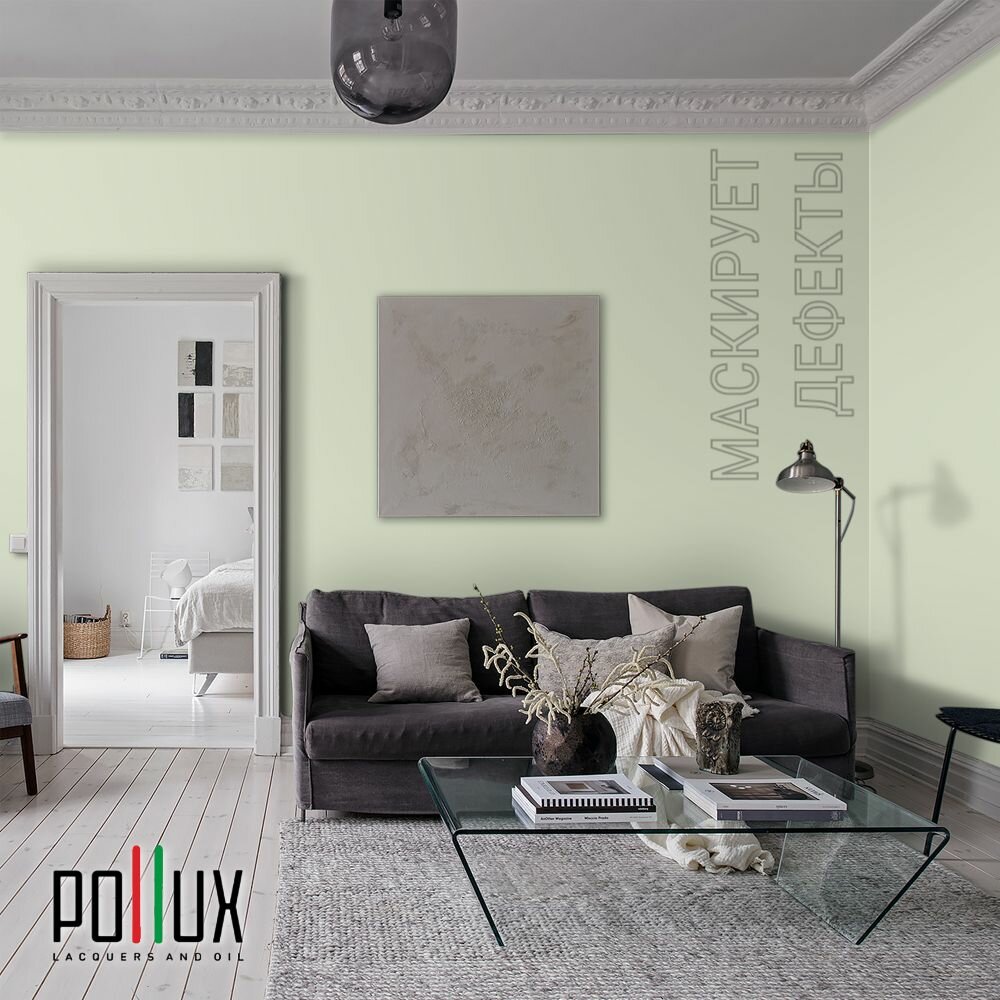 Краска моющаяся интерьерная для стен и потолков, Pollux INTERIOR без запаха, быстросохнущая, акриловая, матовое покрытие, цвет NCS S 0603-G40Y, 1л.