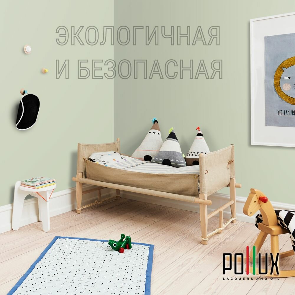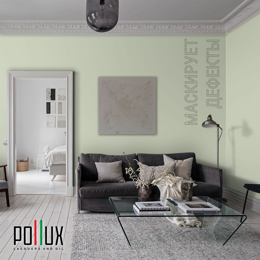 Краска моющаяся интерьерная для стен и потолков, Pollux INTERIOR без запаха, быстросохнущая, акриловая, матовое покрытие, цвет NCS S 1510-G40Y, 1л.