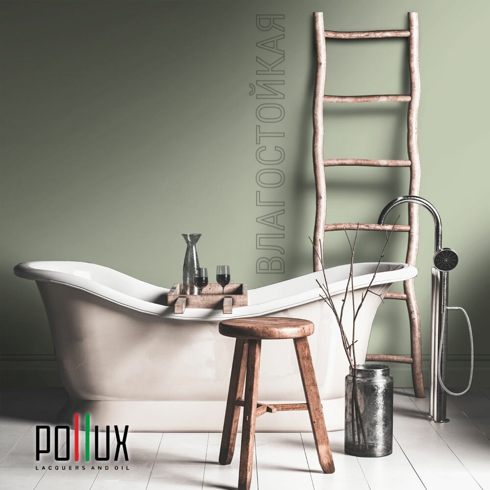 Краска моющаяся интерьерная для стен и потолков, Pollux INTERIOR без запаха, быстросохнущая, акриловая, матовое покрытие, цвет NCS S 4050-G40Y, 1л.