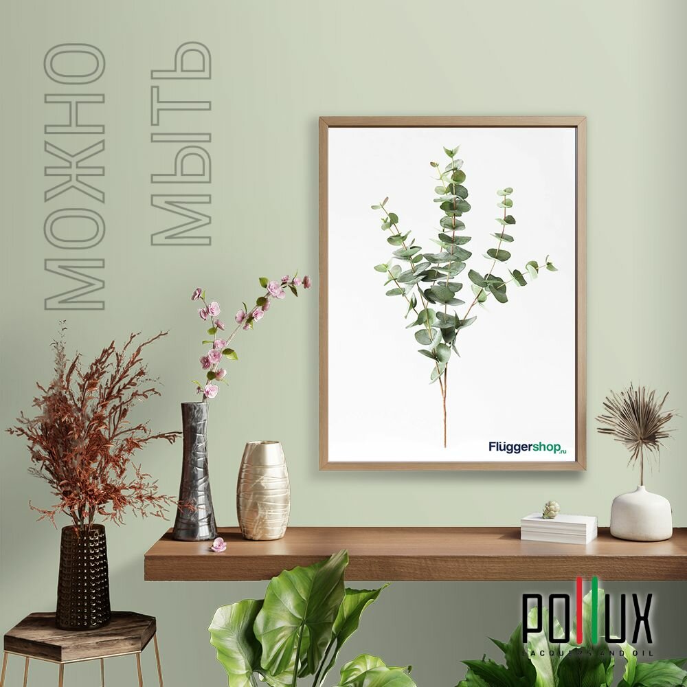 Краска моющаяся интерьерная для стен и потолков, Pollux INTERIOR без запаха, быстросохнущая, акриловая, матовое покрытие, цвет NCS S 5540-G40Y, 1л.